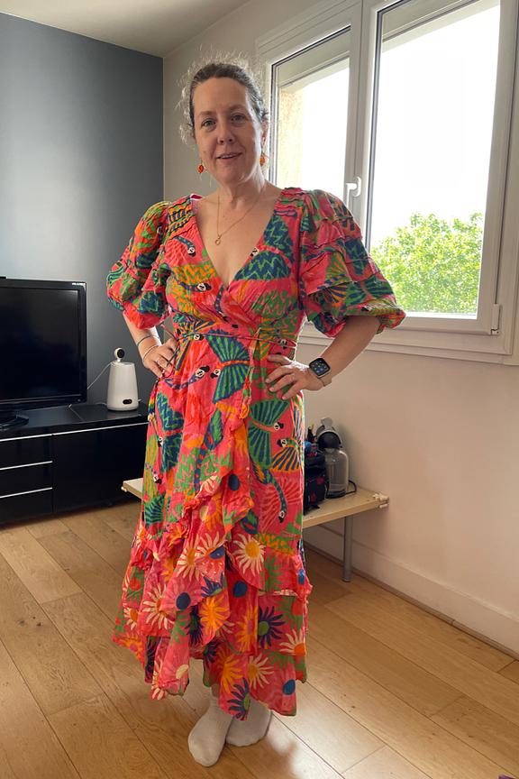 Wikkeljurk, dus pas op voor tocht. Iets te laag uitgesneden voor mij" "