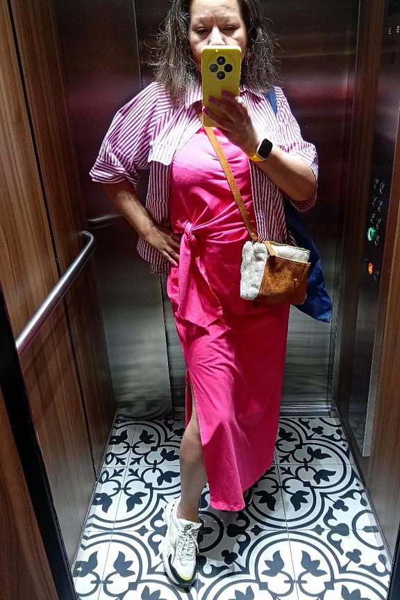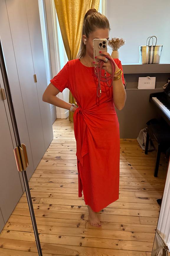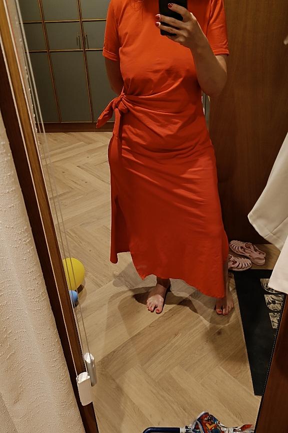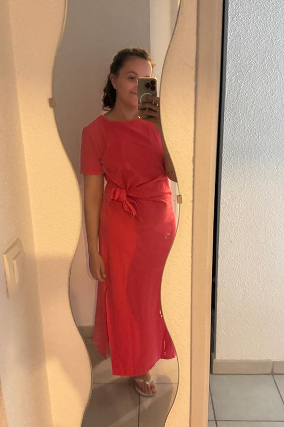 Prachtige jurk. Goede pasvorm en zachte stof. Kleedt mooi af. Geweldige kleur, net zoals op de foto." "