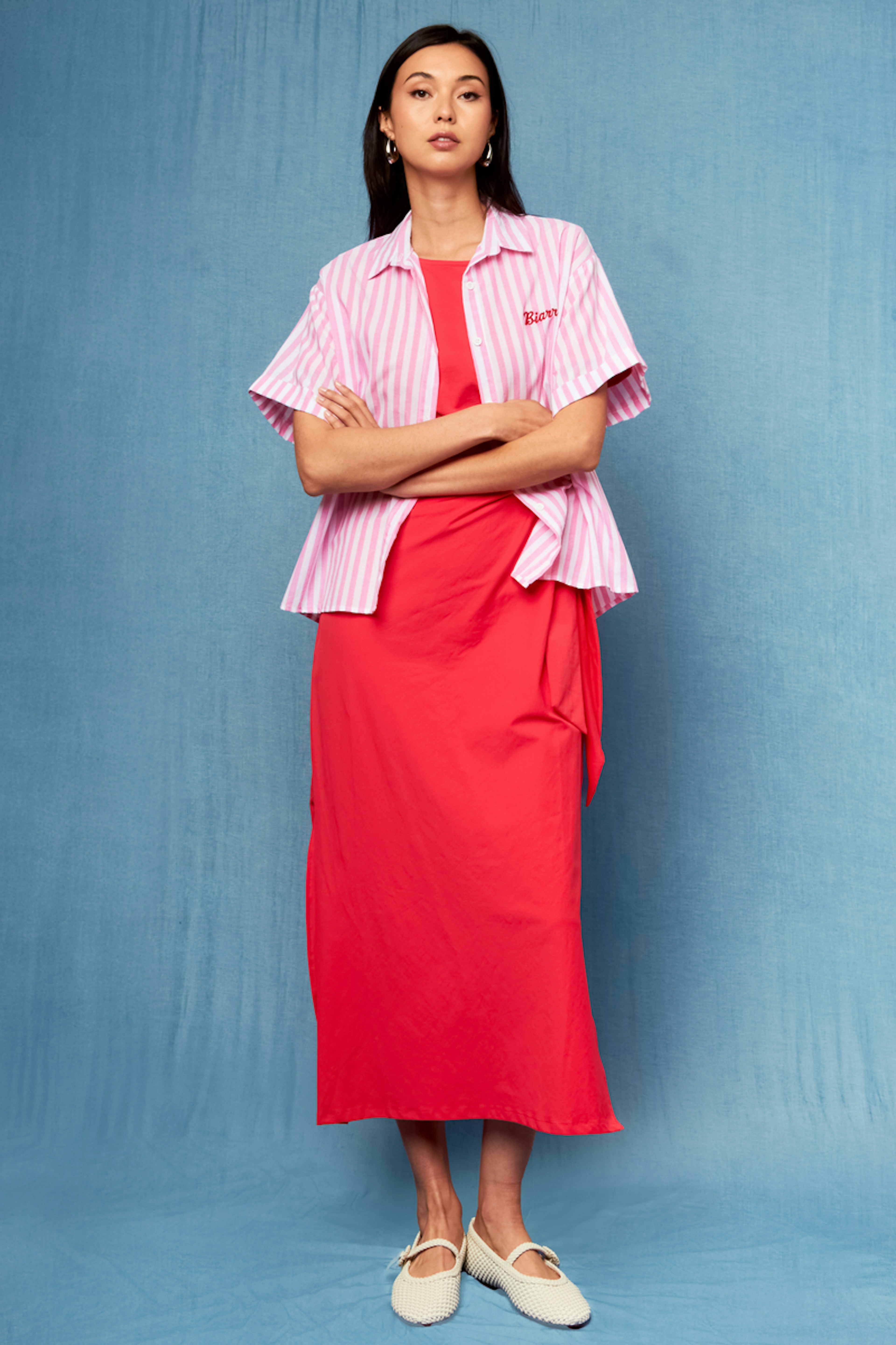 Combineer deze jurk met gouden sandalen en een rieten tas voor een chique zomerse look. - Katoenen maxi-jurk - Recht model - Ronde halslijn - Split opzij - Effen patroon