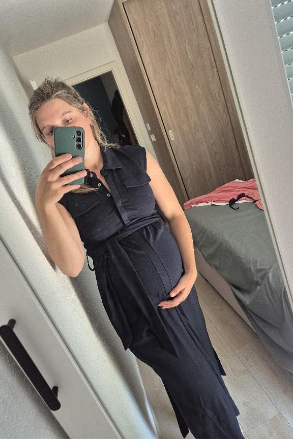 Zware stof, de snit is niet geschikt voor de figuur van een zwangere vrouw." "