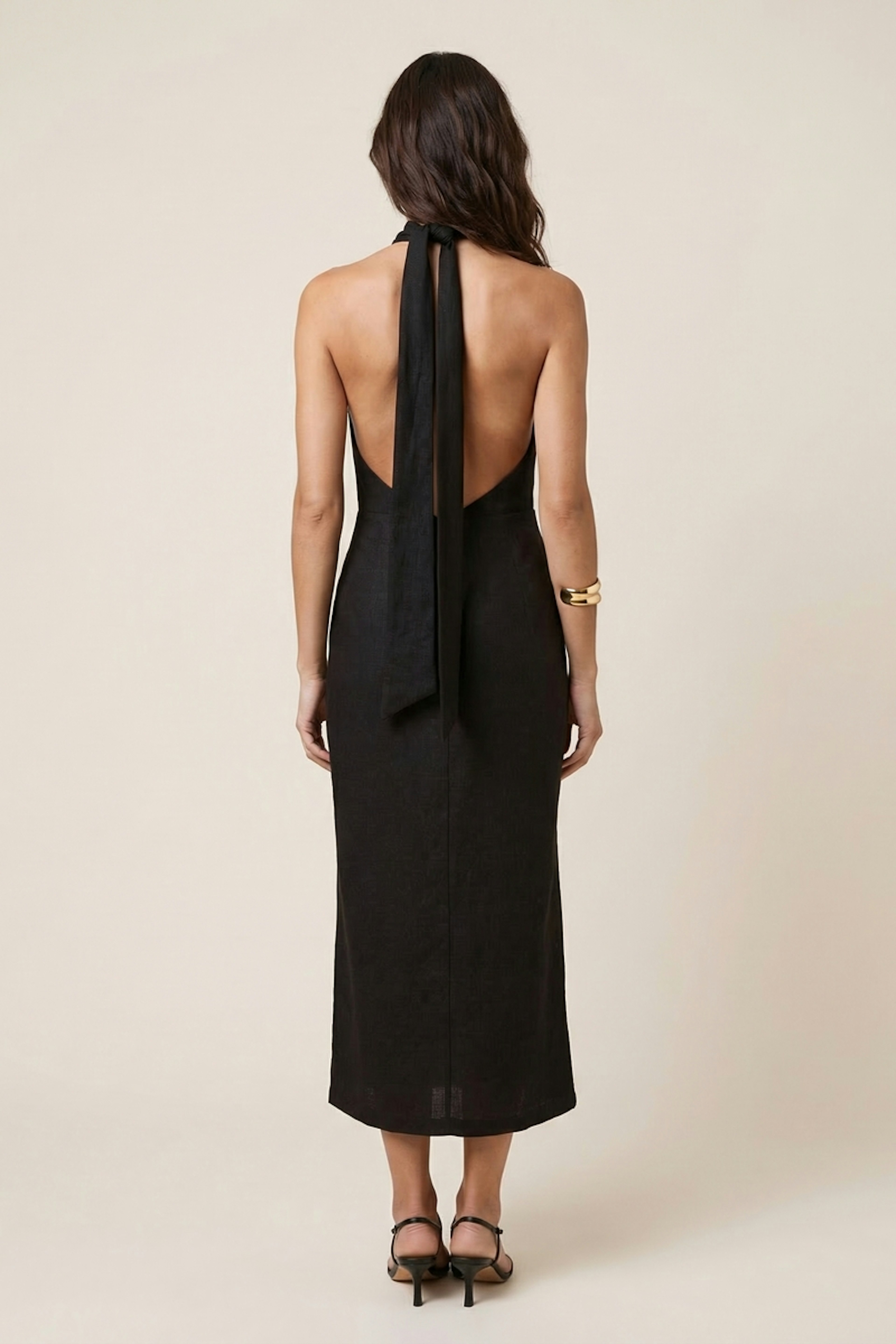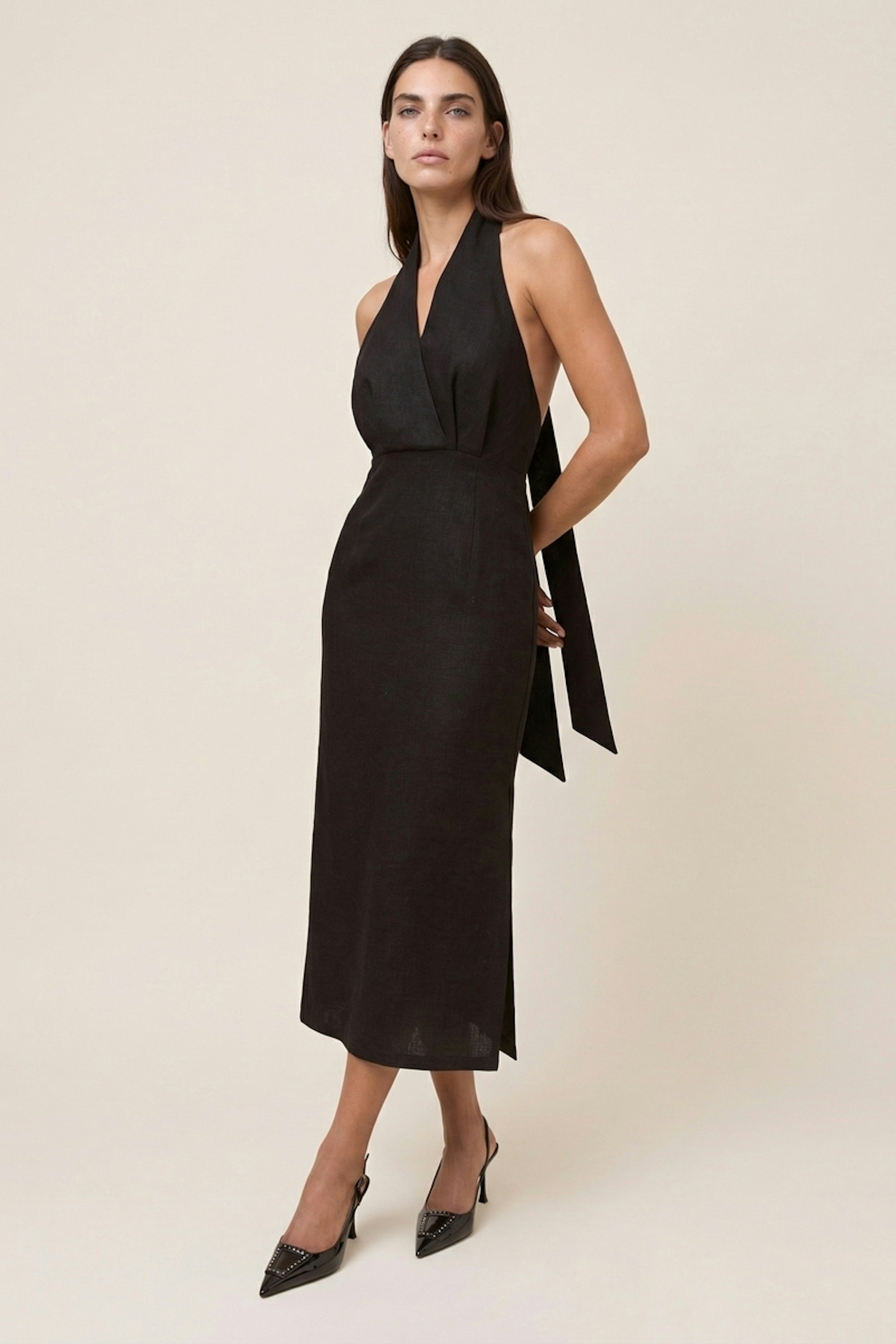 Voor een geraffineerde look combineer je deze zwarte jurk met pumps en een chique handtas. Perfect voor de zomer. - Halterjurk - Aansluitend model - V-halslijn - Mouwloos - Onzichtbare ritssluiting achter