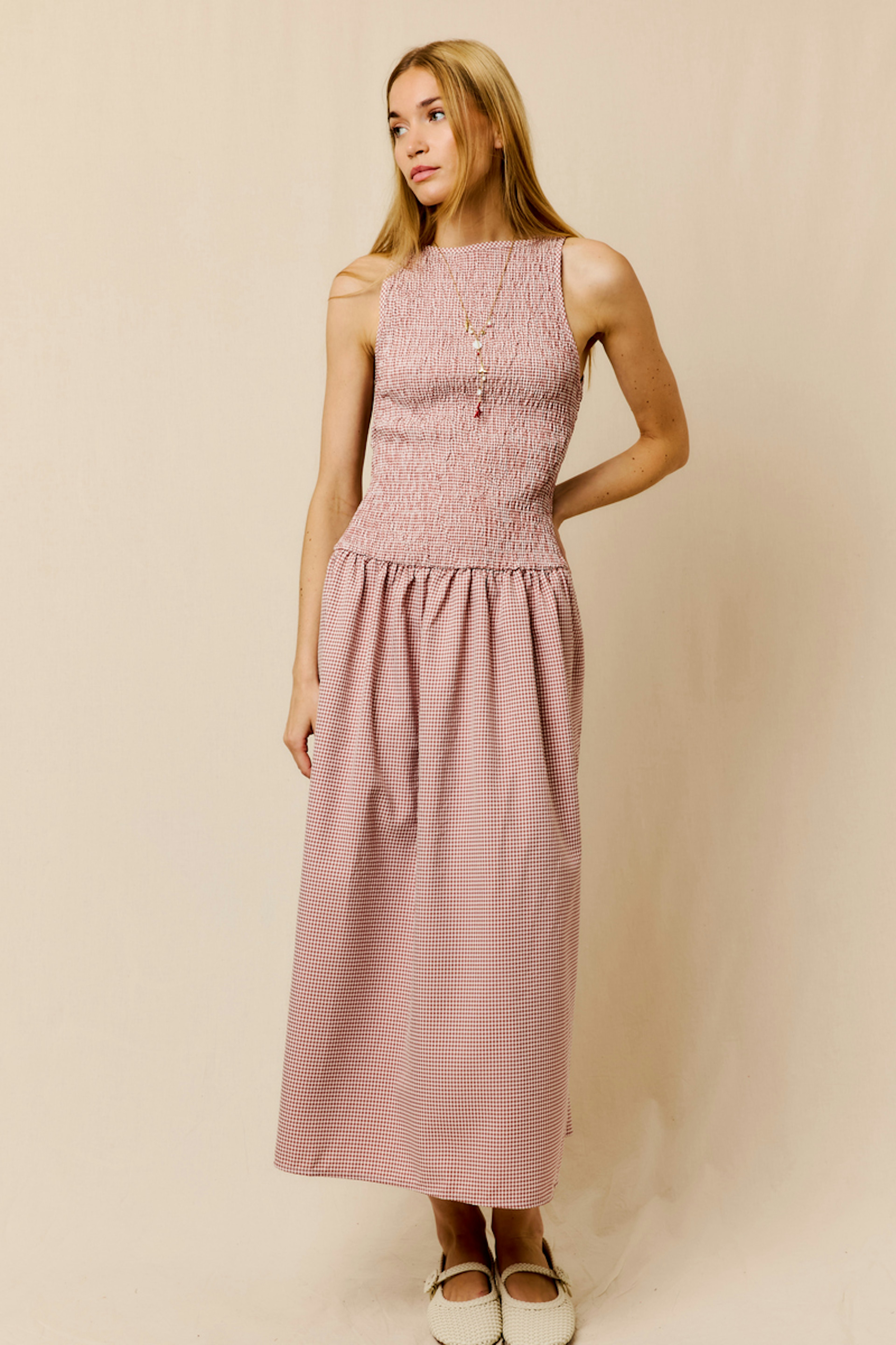 Combineer deze jurk met gouden sandalen en een strooien hoed voor een stijlvolle zomerlook. - Halflange jurk - Uitlopend model - Mouwloos - Ronde hals - Bedrukt motief