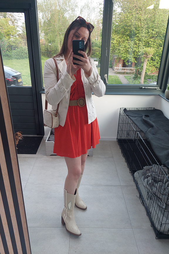 De stof van je jurk is erg mooi! Ik kreeg er veel complimenten over." "