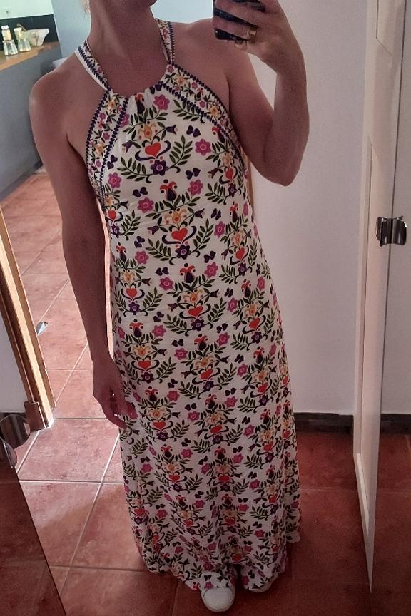 mooie jurk, mooie stof maar ik realiseerde me dat ik het niet kon maken om geen beha te dragen ... ik heb hem dus niet gedragen" "