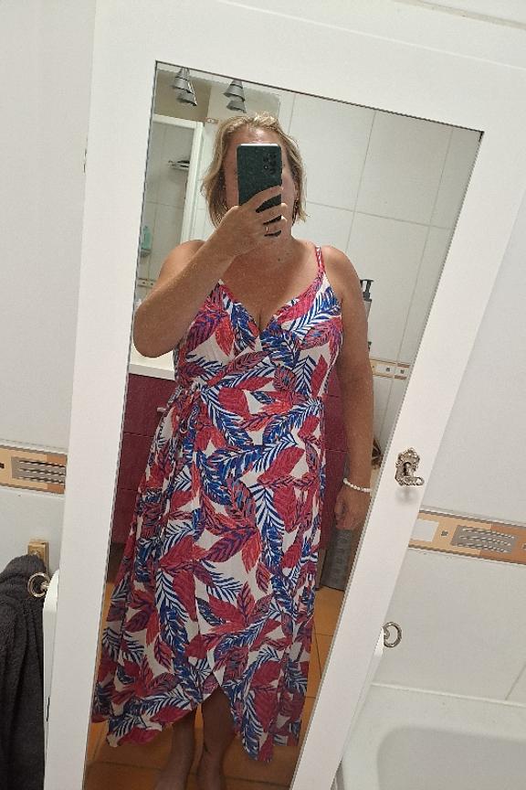 Mooie jurk, aangenaam om te dragen. Diepe halslijn" "