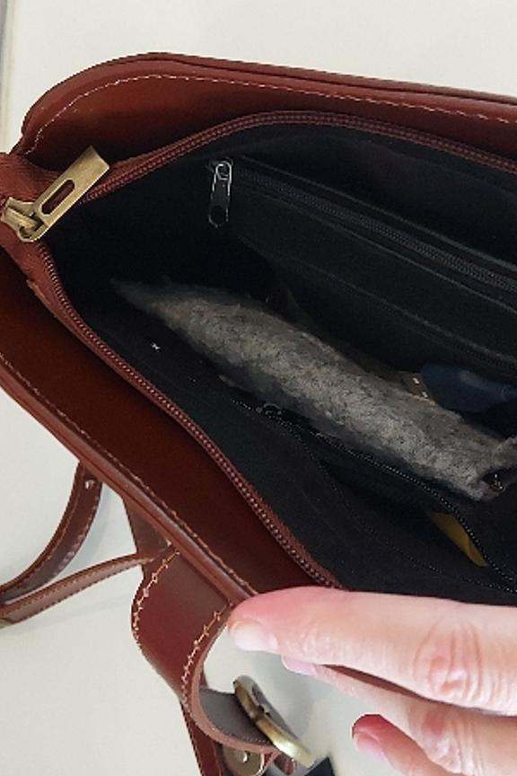 Mooie tas waar genoeg in past. Mooie kleur leer" "