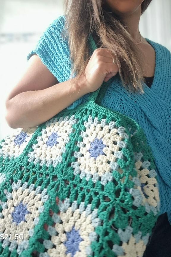 Fleur je dag op met deze gehaakte tote bag, ideaal voor zomerse uitstapjes. Perfect voor elk seizoen met tijdloze bohemian charme. - Gehaakte tote bag - Kleurrijk ontwerp - Geometrisch patroon - Stevige hengsels - Ruim en praktisch