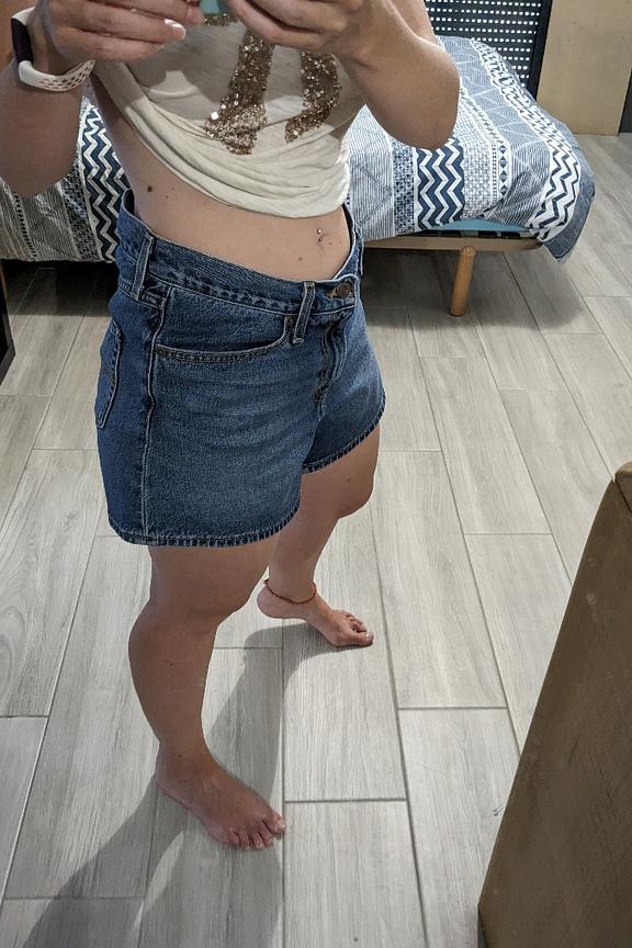 - 80s Mom shorts - Geen stretch - Ontspannen heup - Hoge taille - Ritssluiting - 5-pocket ontwerp