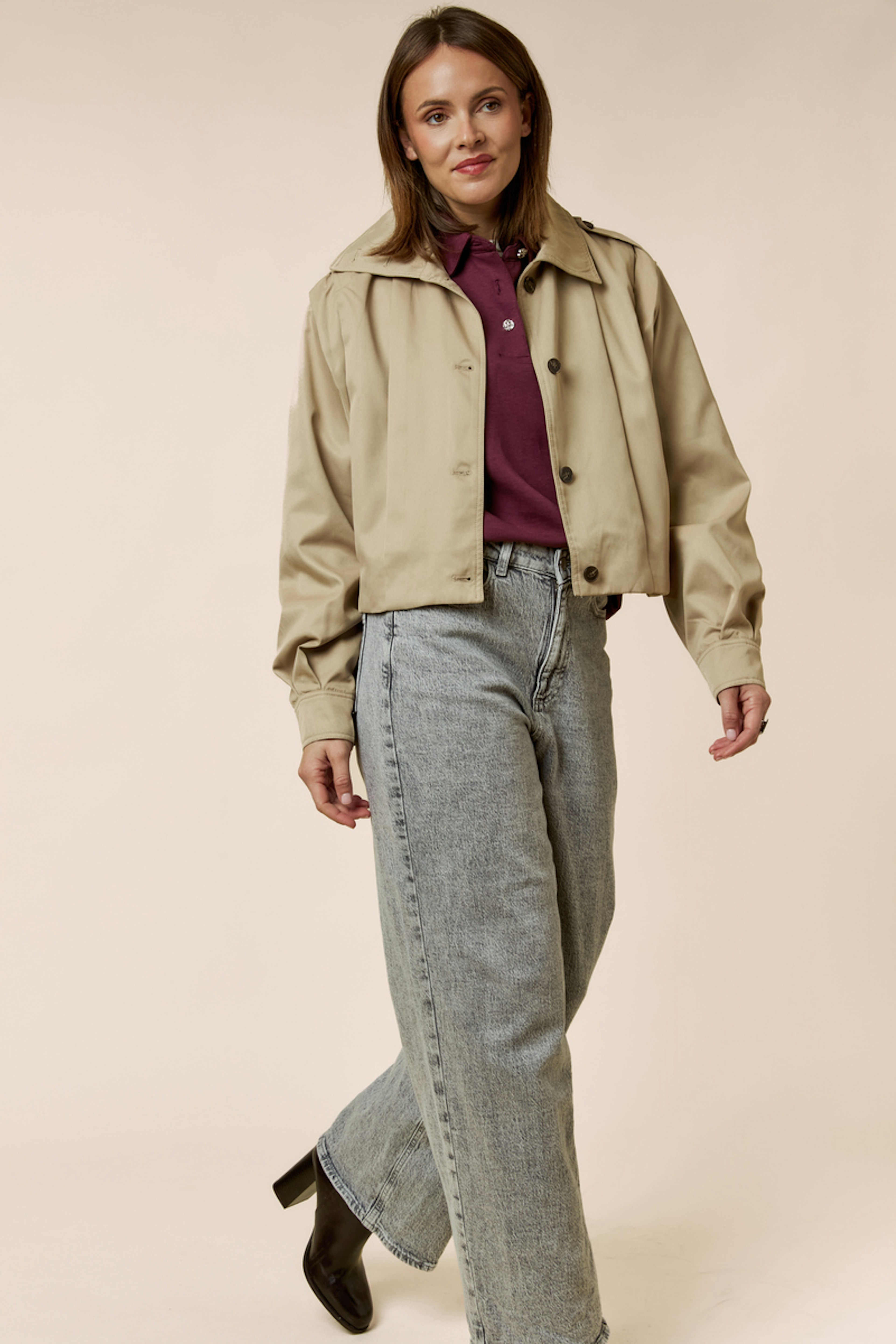 Draag deze trenchcoat met een lichte trui en enkellaarzen voor een chique winterlook. • Moderne trenchcoat • Korte pasvorm • Gestructureerde schouders • Lange mouwen • Ceintuurdétails