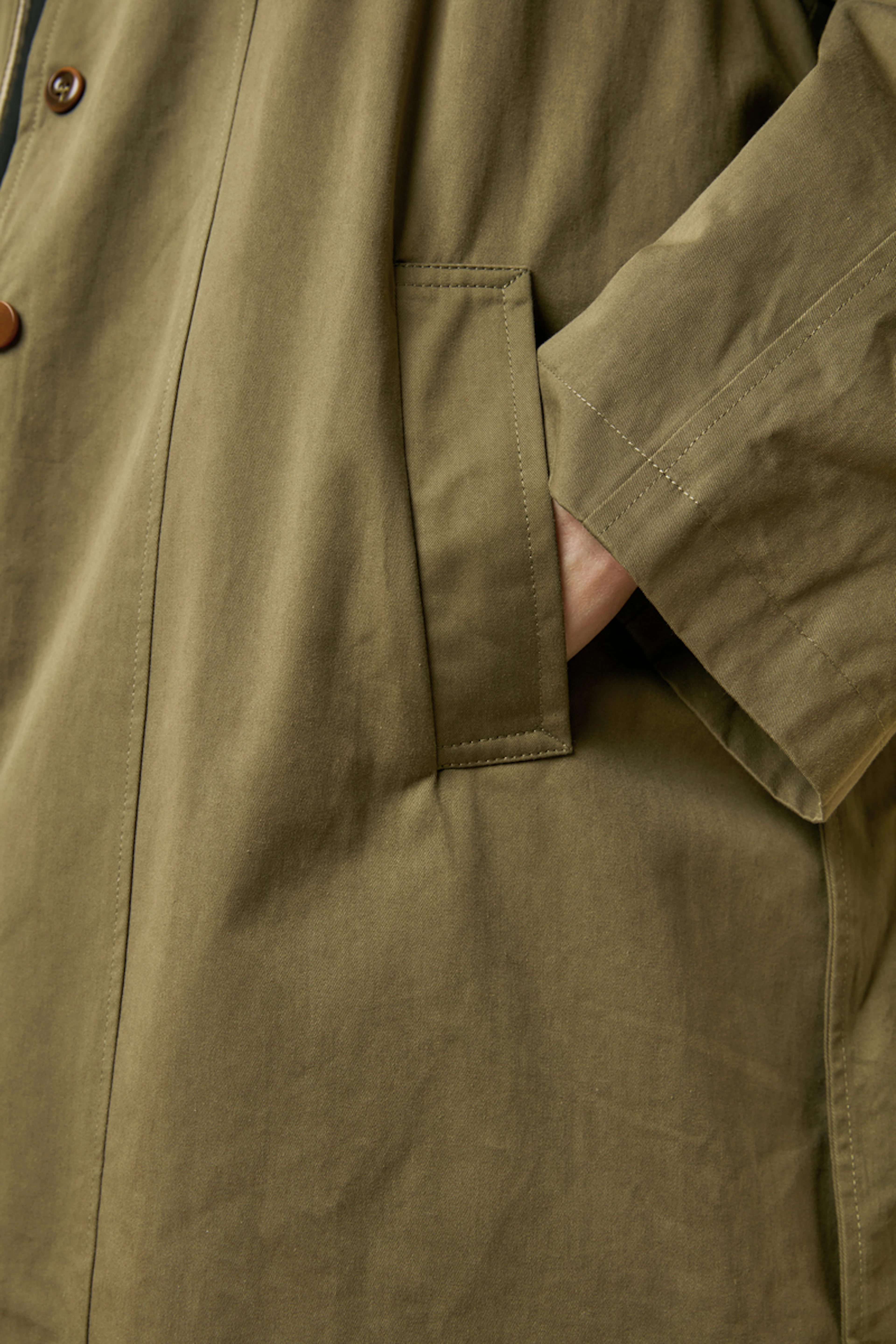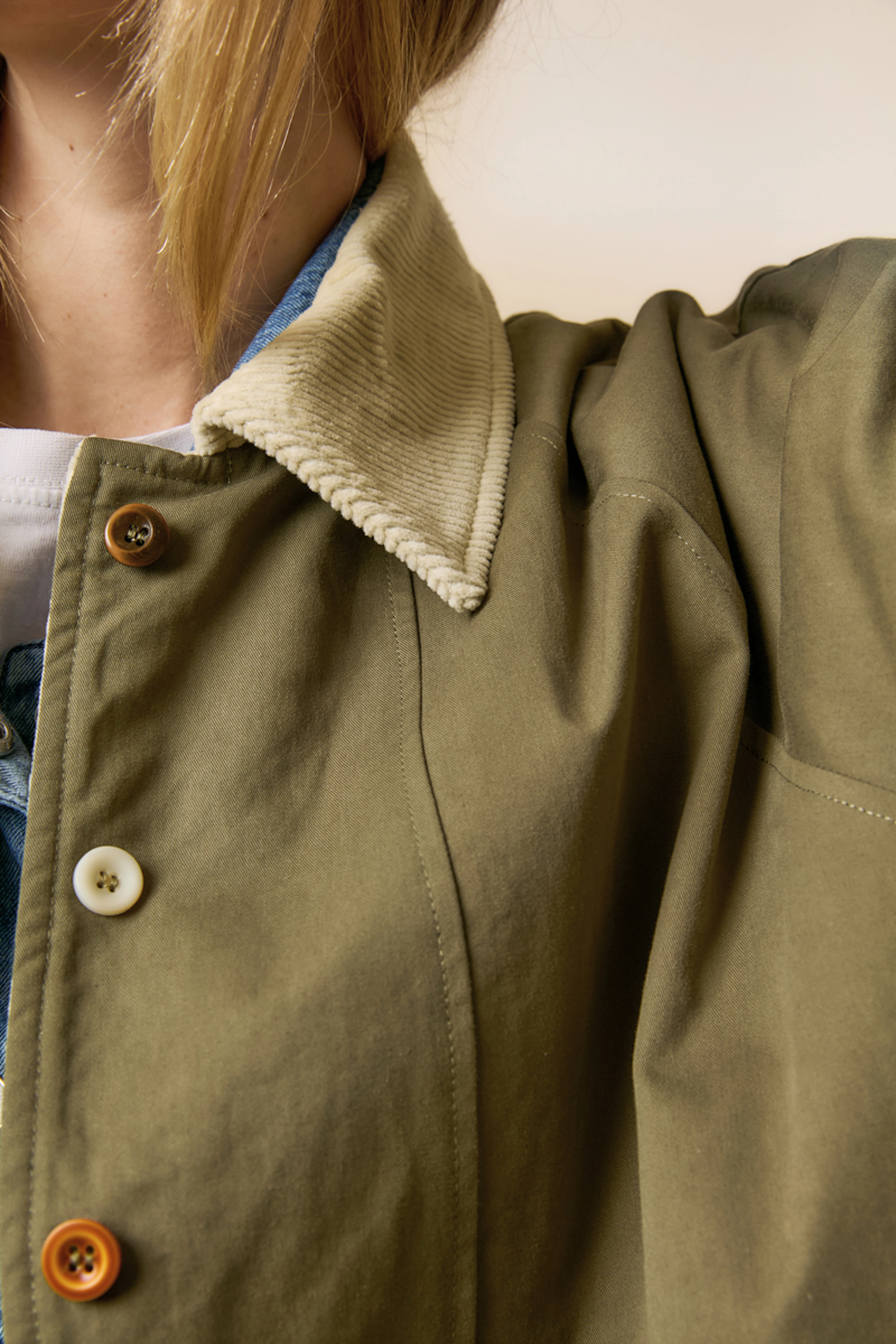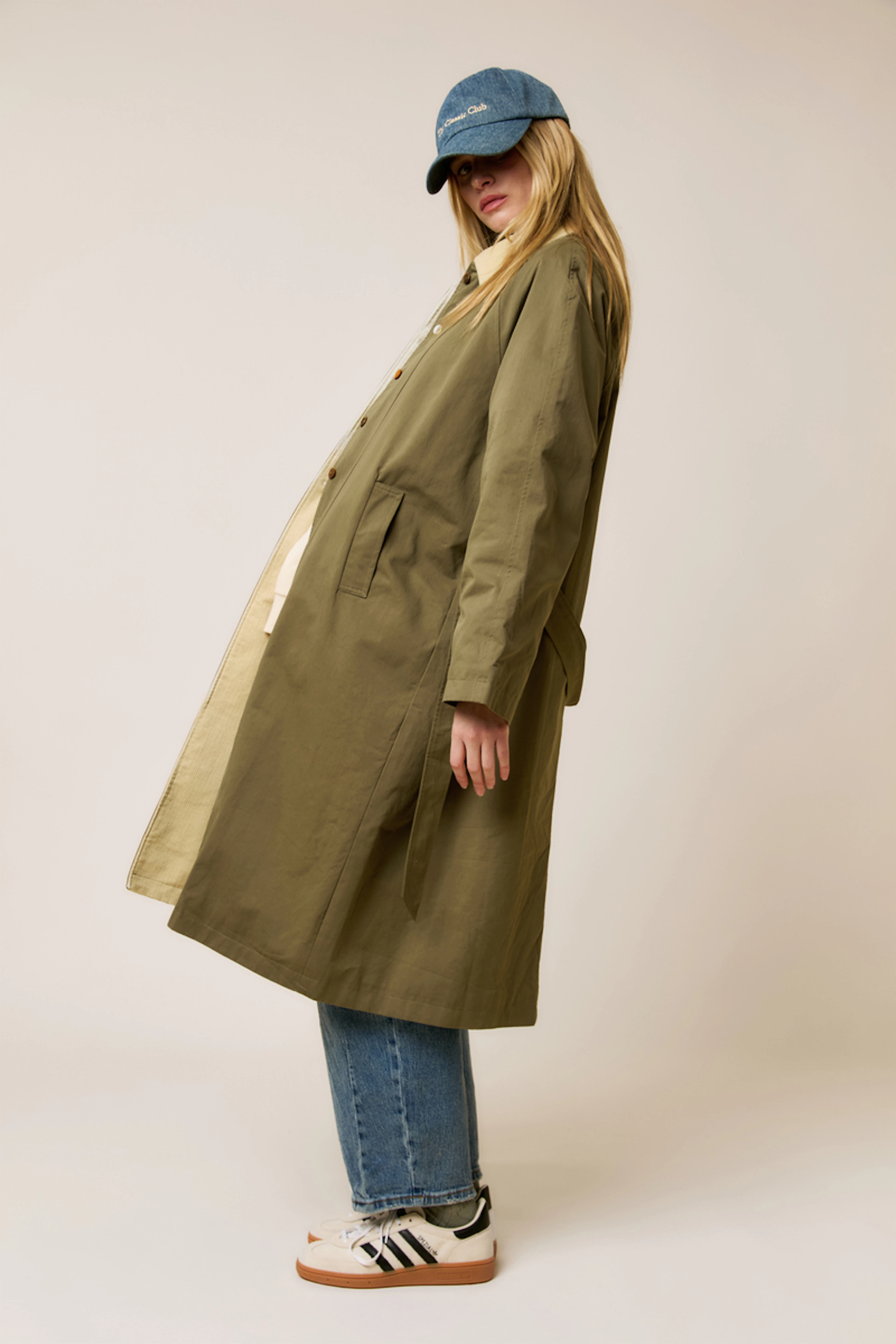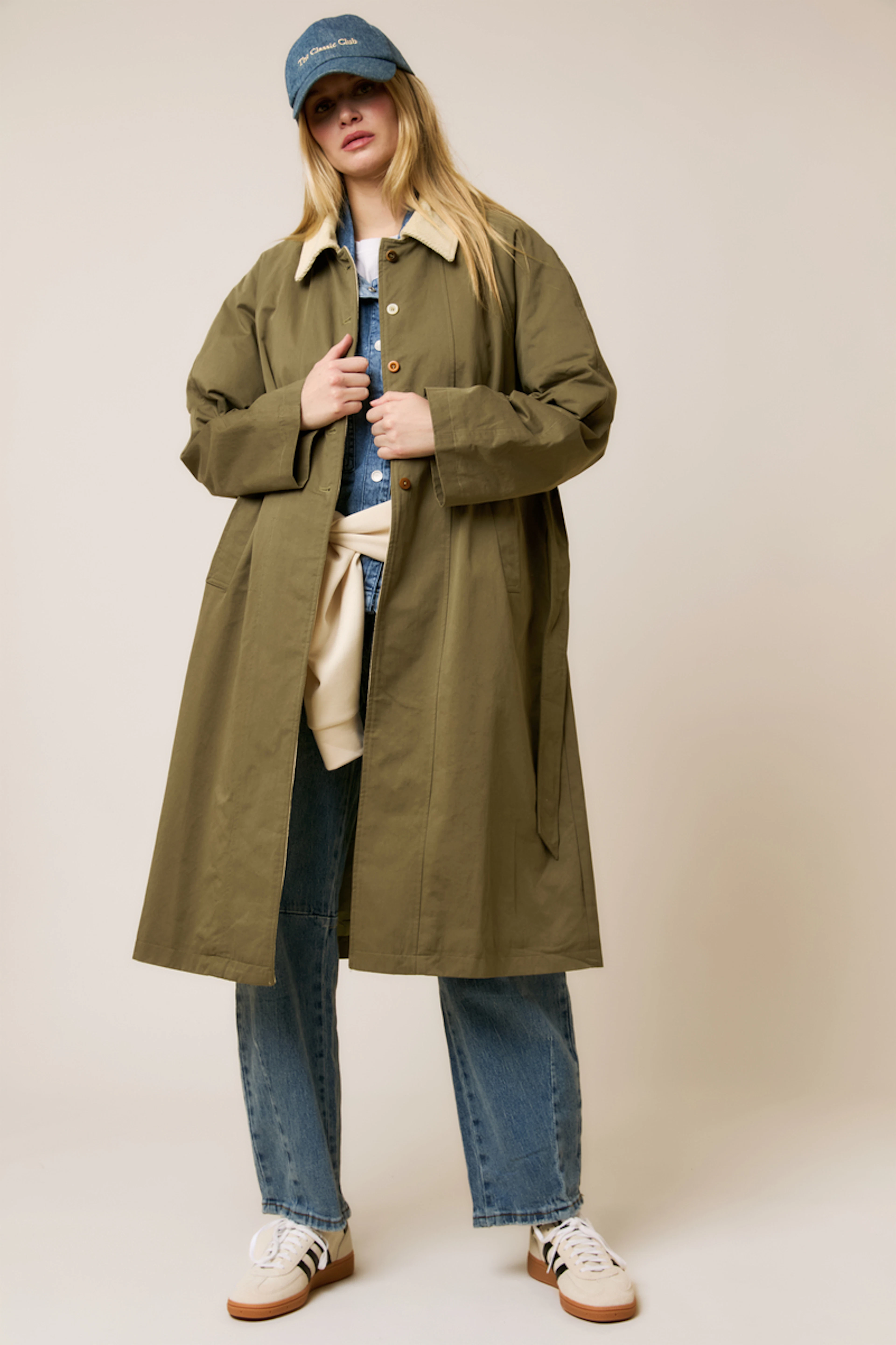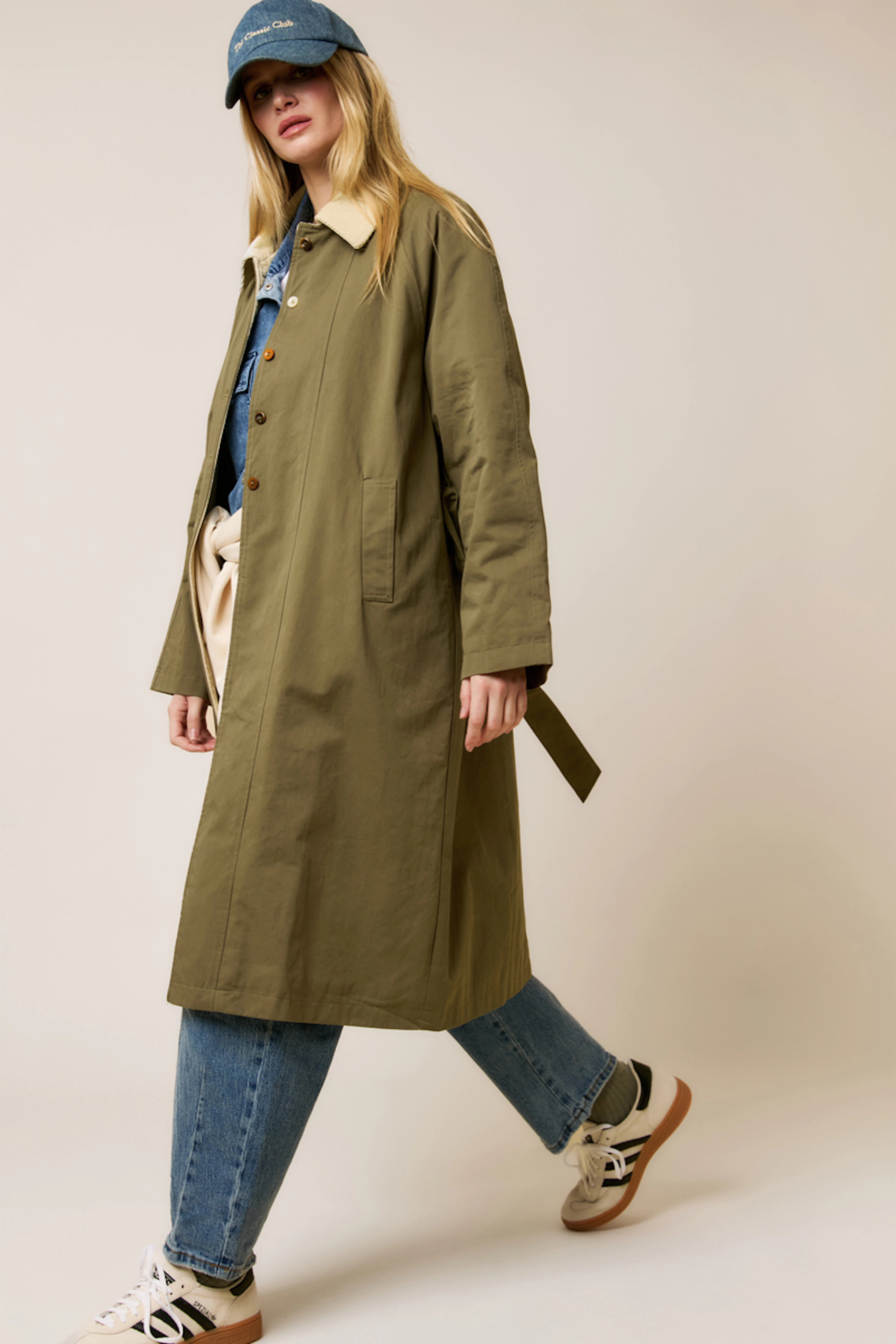 Combineer deze jas met enkellaarsjes en een wollen sjaal voor een chique winterlook. • Katoenen jas • Lange pasvorm • Lange mouwen • Strikkraag • Contrasterende knopen