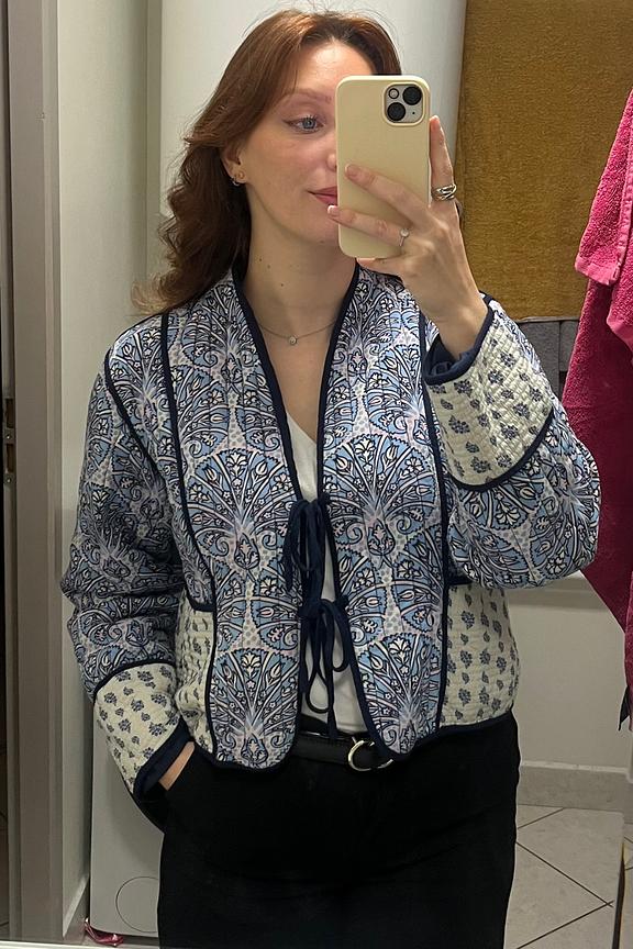 Geef je outfit een bohemian touch door dit jack te combineren met een skinny jeans en leren enkellaarsjes voor een chique casual look. - Jas van viscose - Kort model - Lange mouwen - Striksluiting - Bedrukt motief
