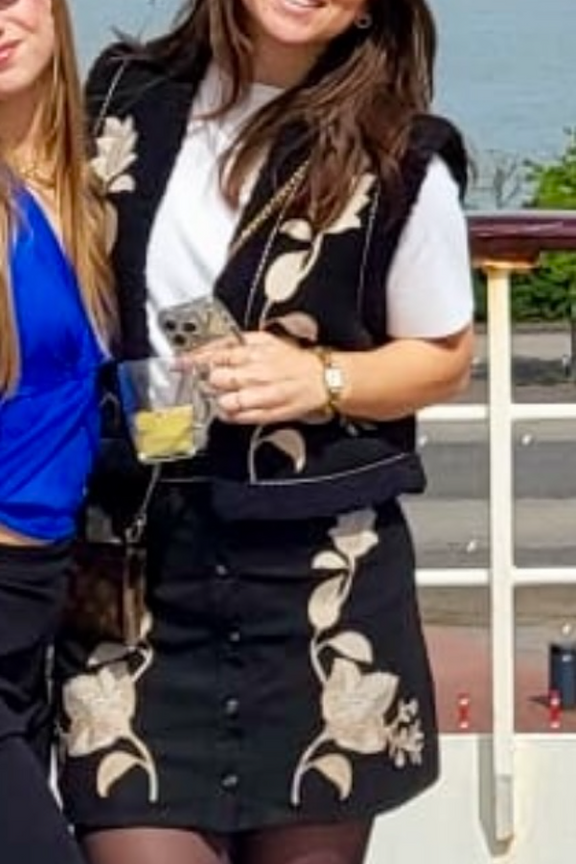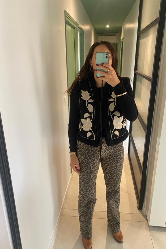 Geef je outfit een bohemienachtige touch met dit gebloemde jasje. Ideaal voor over een coltrui in de winter - Jas met bloemmotieven - Recht model - Mouwloos - Geborduurde details - Contrasterende stofranden