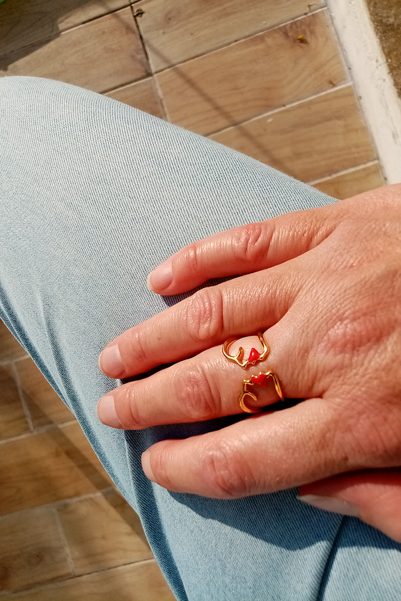 Petite scรจne d'amour graphique et poรฉtique qui se dรฉroule sur votre doigt... Ce bijou est recouvert d'une couche d'or de 0.3 microns. Les bijoux plaquรฉs or doivent รชtre traitรฉs avec soin, il faut donc รฉviter le contact direct avec de l'eau ou du parfum.