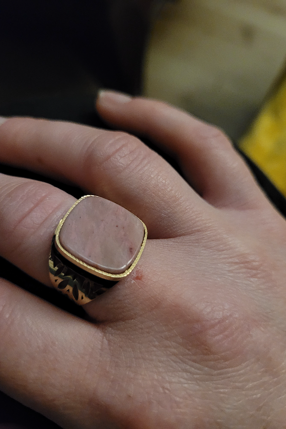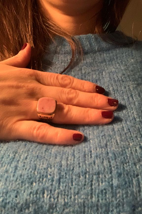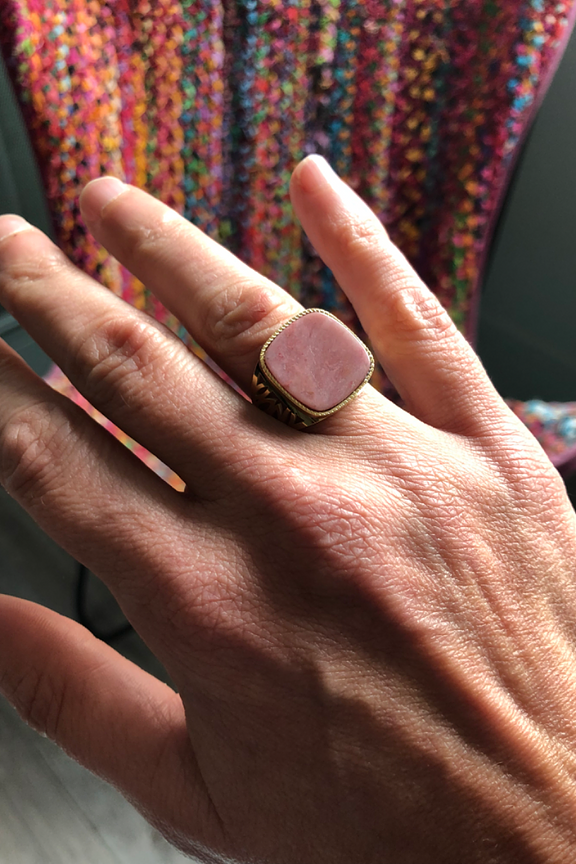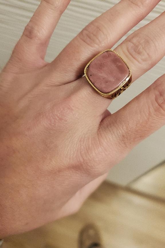 โข Bague ajustable graphique, ajourรฉe et sertie d'une pierre naturelle. โข Matiรจre : acier inoxydable, ce bijou rรฉsiste ร l'eau et ne noircit pas.