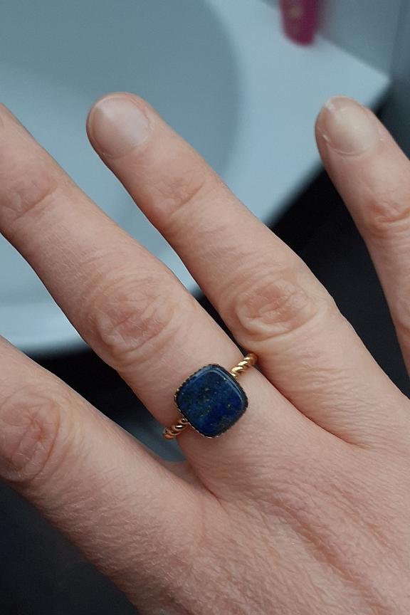 Bague en acier inoxydable composรฉe d'un anneau torsadรฉ et d'une pierre naturelle carrรฉe. โข Ajustable, la bague se resserre ou s'agrandit : de la taille 52 ร 56 โข Hauteur de la bague: 6 mm โข Dimensions du pendentif : 10 x 10 mm โข Garantie sans nickel, sans cadmium, sans sel de plomb. โข Rรฉsiste ร lโeau et ne noircit pas.