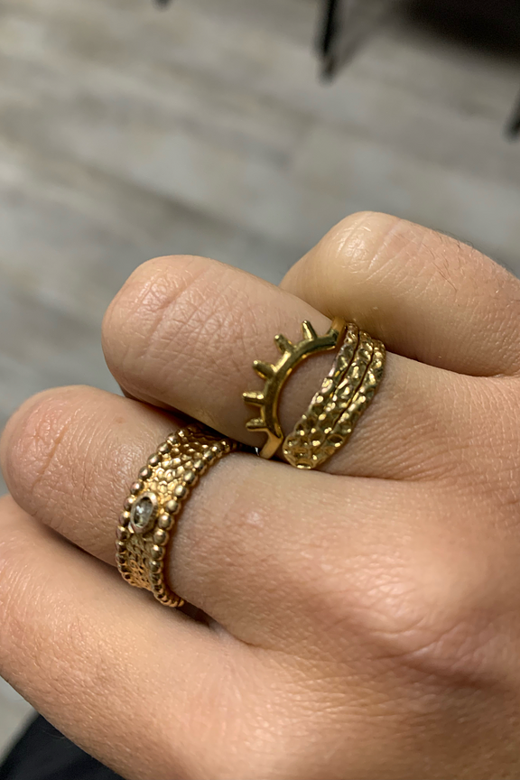 Bague ajustable graphique. โข Matiรจre : Acier inoxydable โข Hypoallergรฉnique, ce bijou rรฉsiste ร l'eau et ne noircit pas