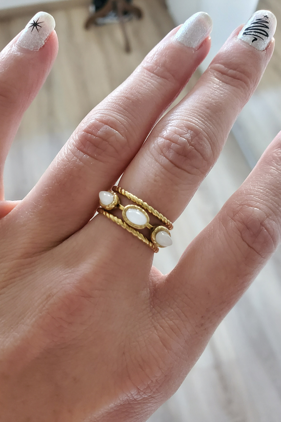 โข Bague ajustable multirangs, martelรฉe effet tressรฉ serti d'une pierre naturelle โข Matiรจre : Acier inoxydable โข Hypoallergรฉnique, ce bijou rรฉsiste ร l'eau et ne noircit pas
