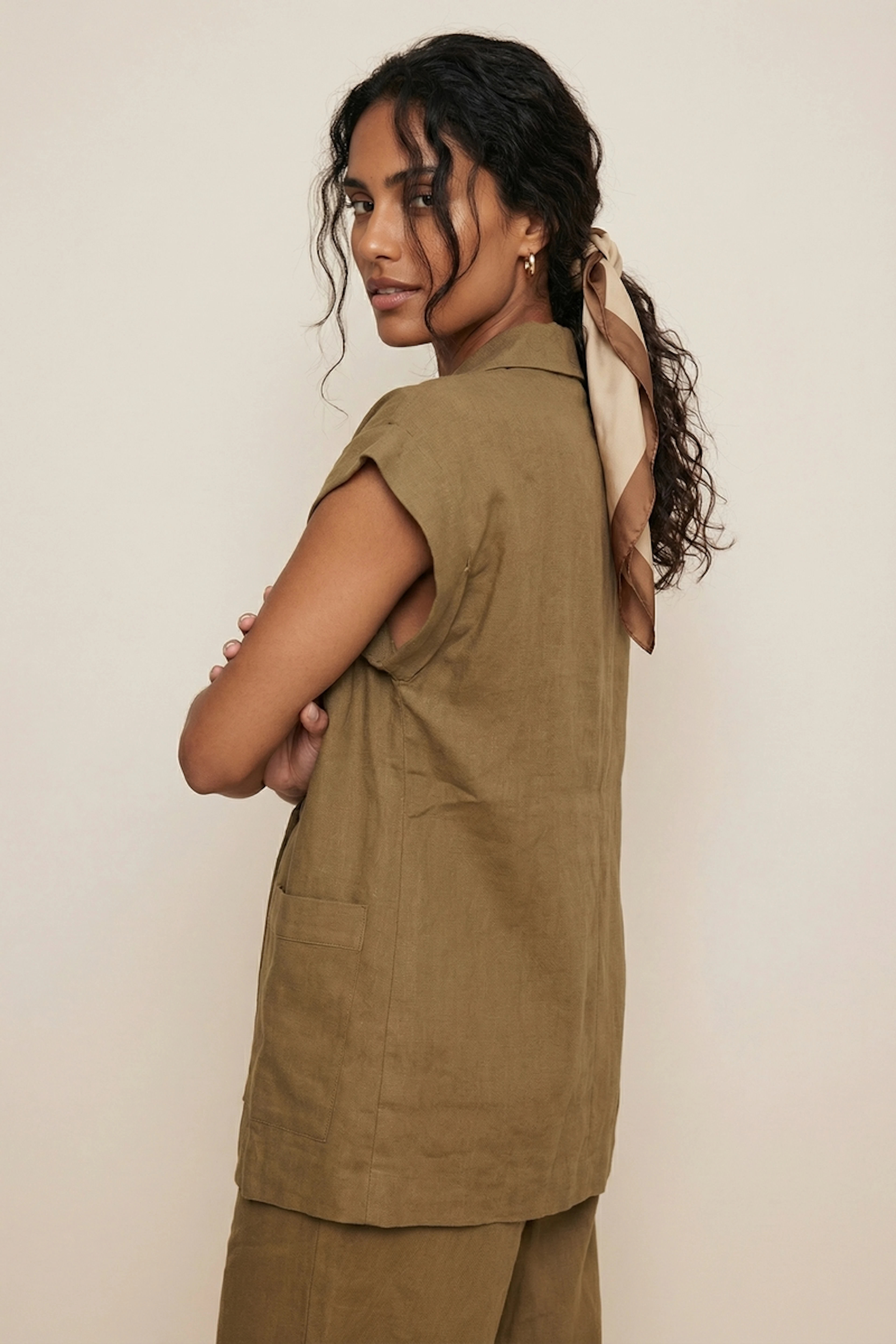 Pour un style chic d'été, associez ce blazer avec un pantalon fluide et des mules élégantes. • Blazer à manches courtes • Coupe ample et décontractée • Épaules structurées • Revers crantés • Fermeture à un bouton