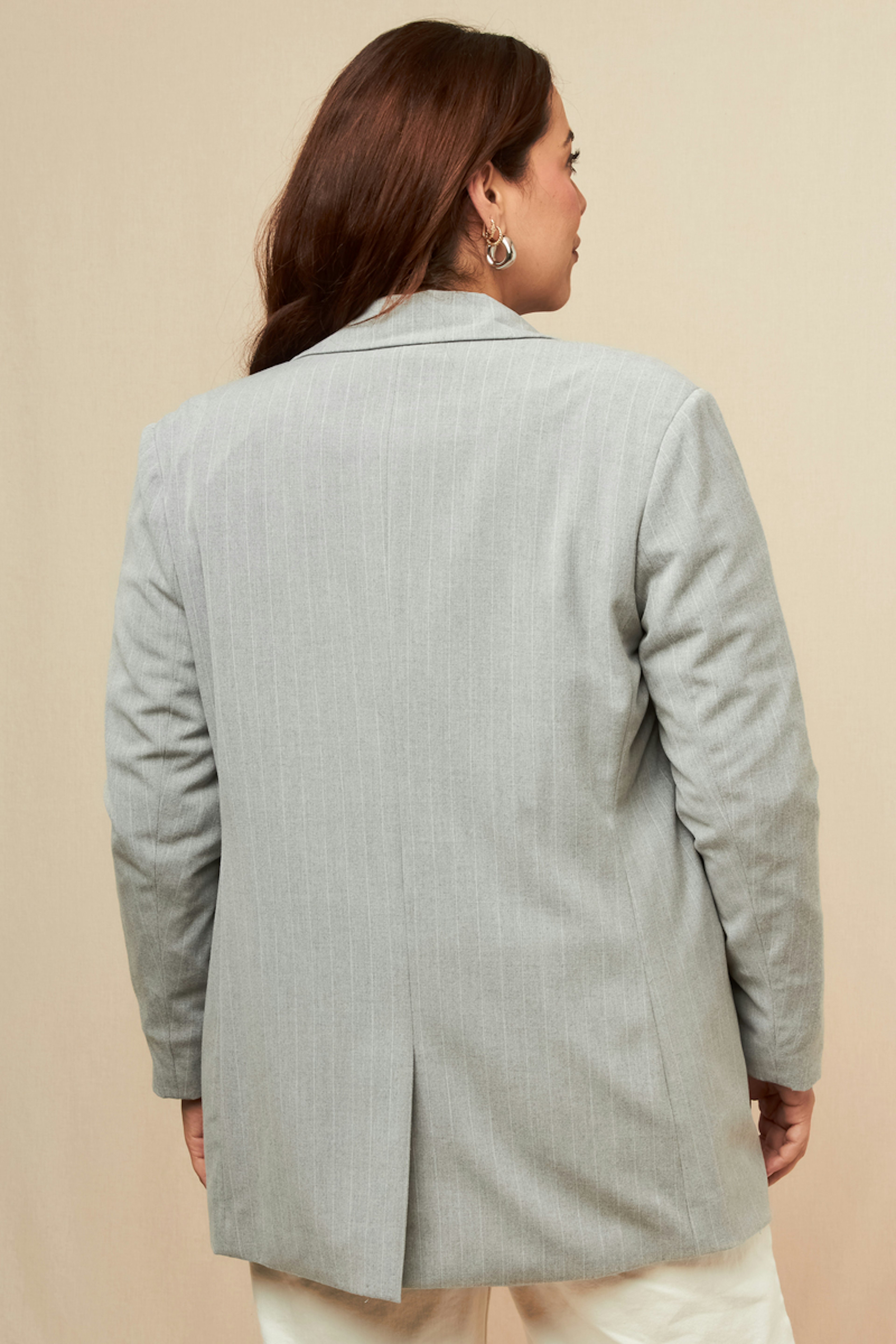 Ce blazer est idéal pour un look chic avec une chemise blanche et un pantalon ajusté. Ajoutez-y des mocassins pour un style élégant en plein hiver. • Blazer à fines rayures • Coupe ample et droite • Épaules légèrement structurées • Fermeture à bouton unique • Poches à rabat pratique