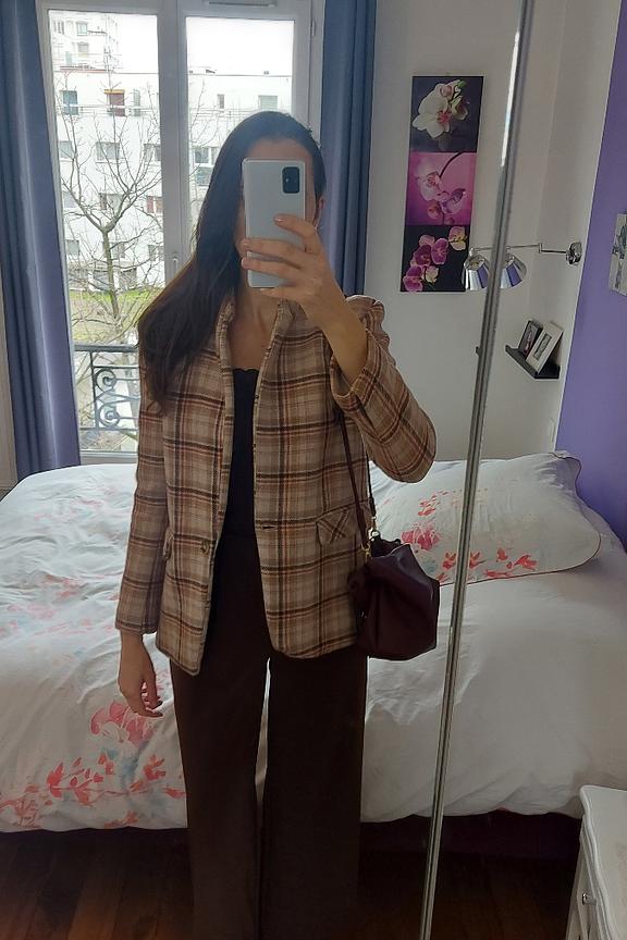 Associez ce blazer à une jupe crayon et des bottines pour un look chic en hiver. • Blazer à carreaux • Coupe ajustée • Manches longues • Col à revers • Boutonnage simple