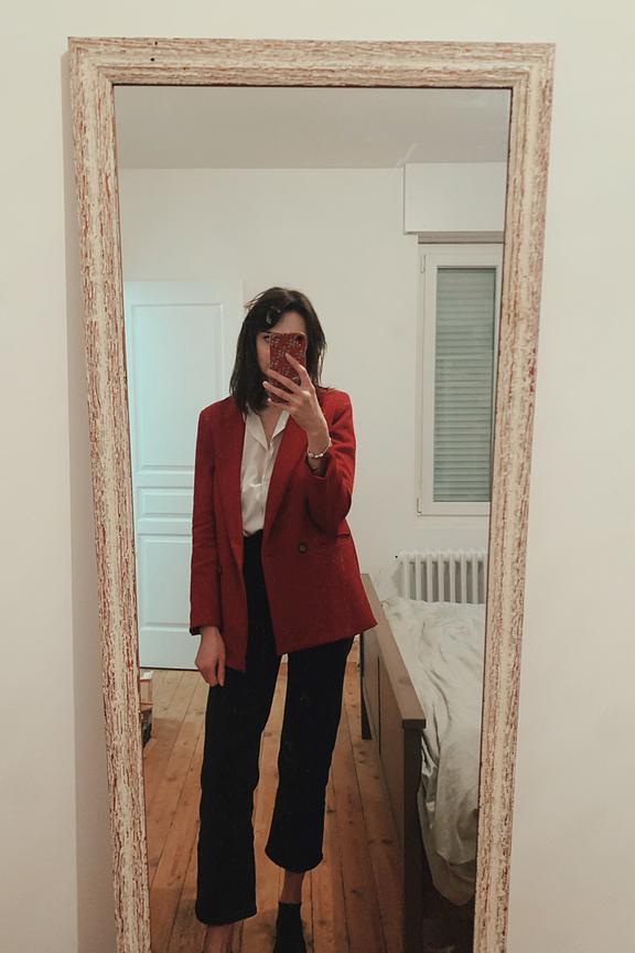 โข Veste blazer โข Tissus lurex โข Coupe droite โข Col tailleur โข Poches passepoils โข Manches longue โข Fermeture boutonnรฉe sur le devant โข Boutons en corne bruts โข Doublรฉe Cette piรจce taille normalement. Choisissez votre taille habituelle. Pour une taille S : โ Longueur de 73 cm โ Largeur dโรฉpaule de 42 cm
