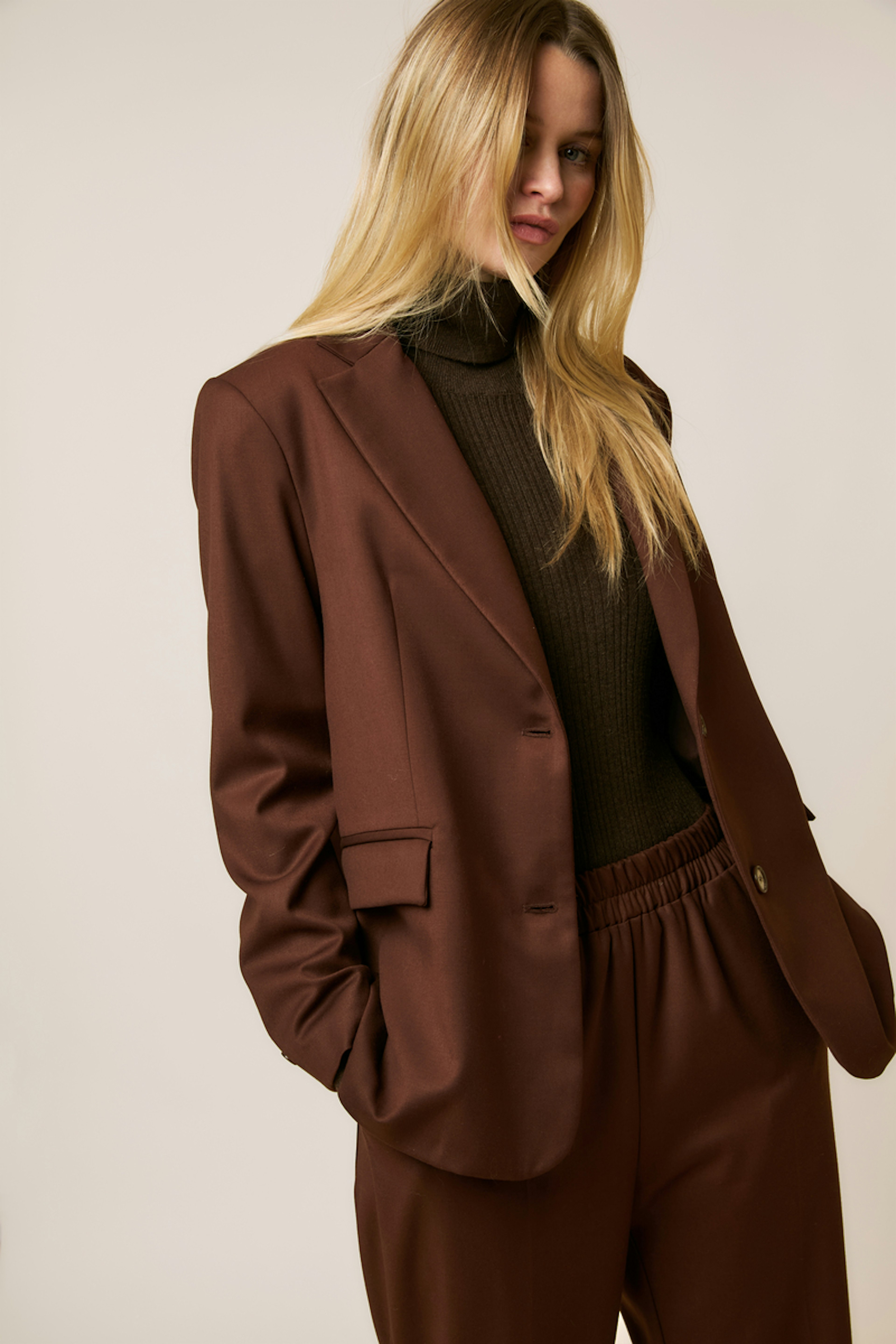 Optez pour ce blazer Opullence avec un col roulé pour un look sophistiqué. Ajoutez un pantalon taille haute pour une touche moderne. Parfait pour l’hiver. • Blazer structuré • Coupe tempérée • Épaulettes intégrées • Boutonnage simple • Poches avant utilitaires