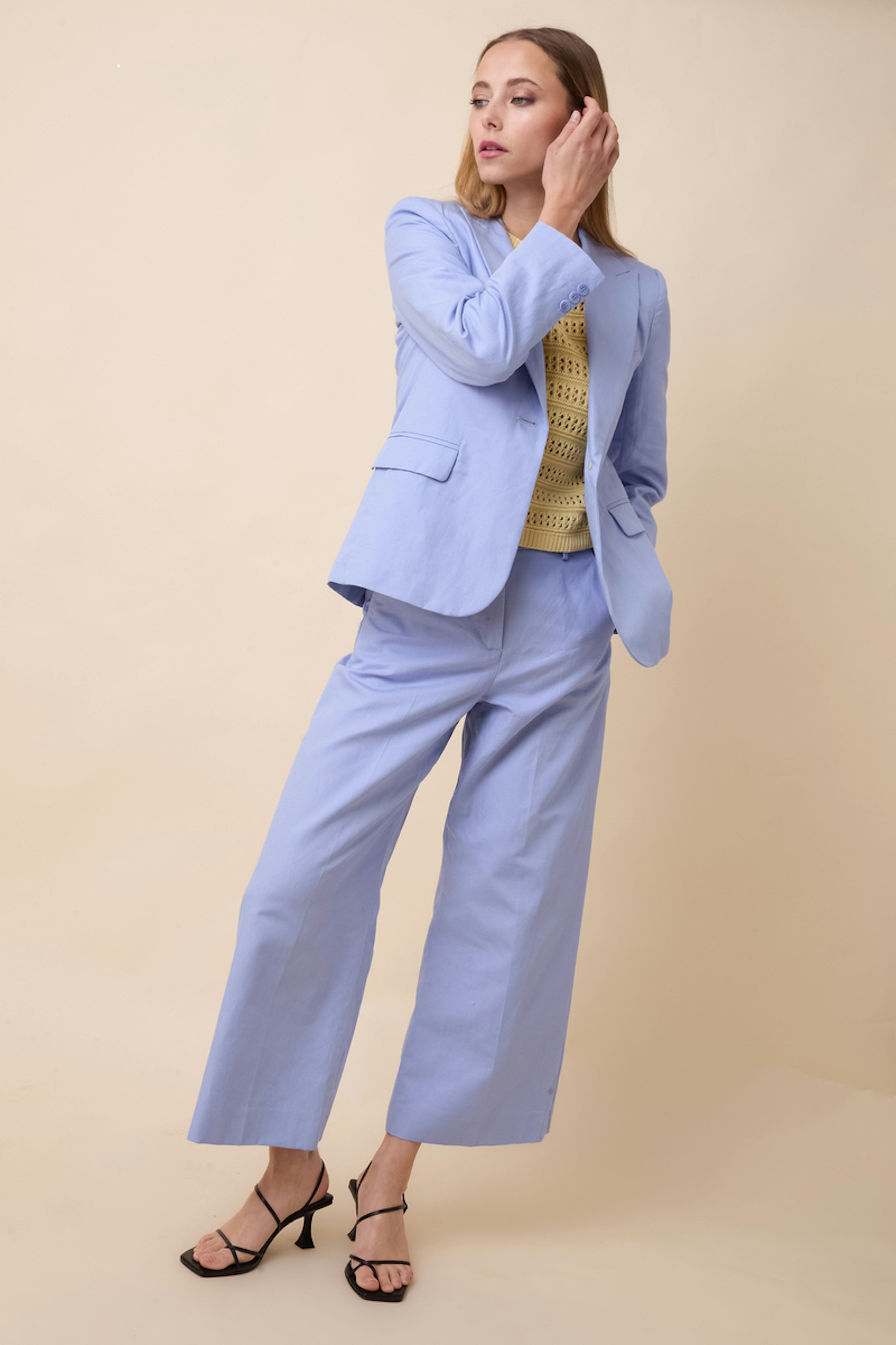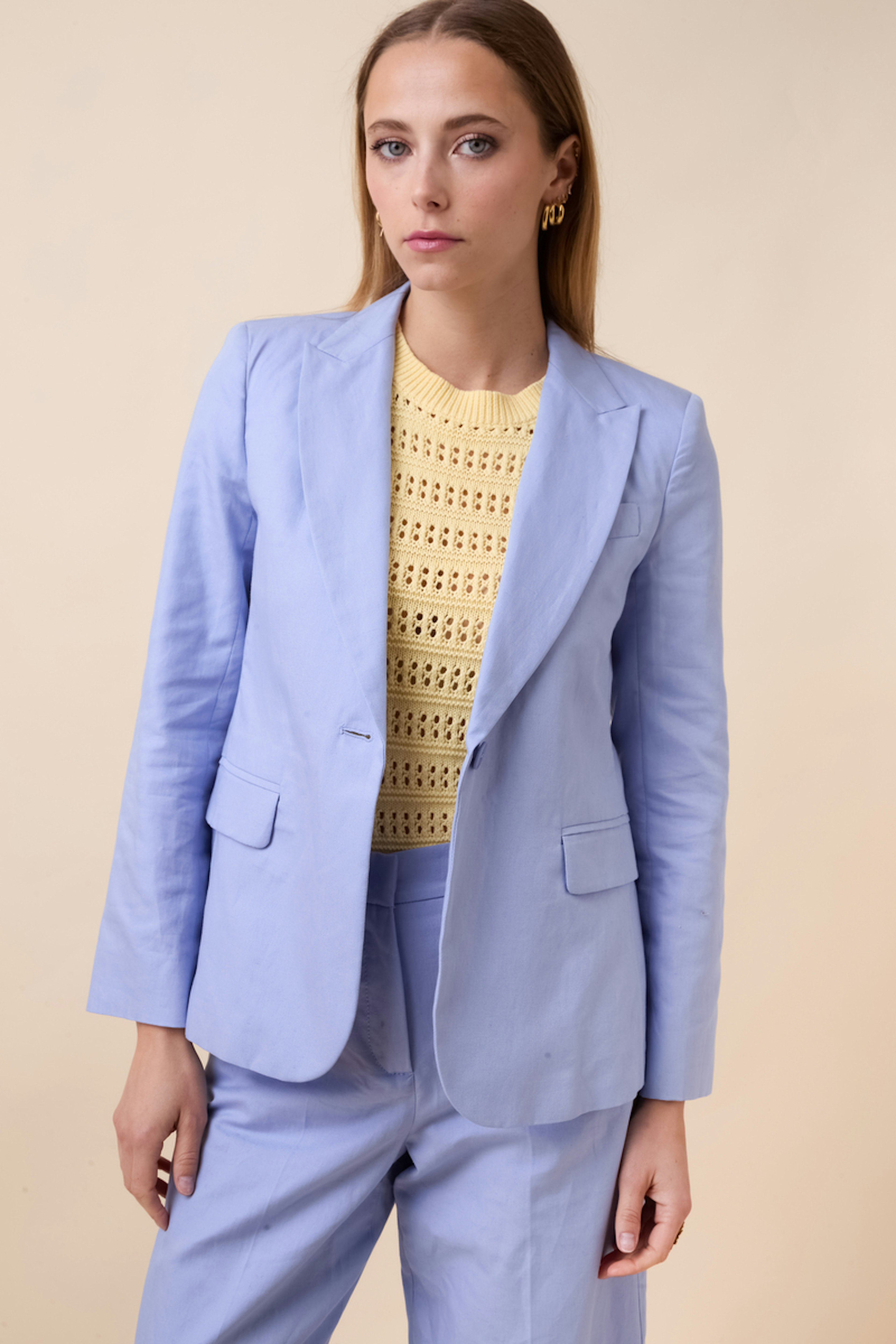 Ce blazer bleu WEEKEND Max Mara est la pièce maîtresse de votre garde-robe. Portez-le avec un pantalon assorti et des sandales à talons pour une allure chic en toute saison. • Blazer en coton et lin • Coupe cintrée • Manches longues • Poches à rabat • Fermeture à un bouton