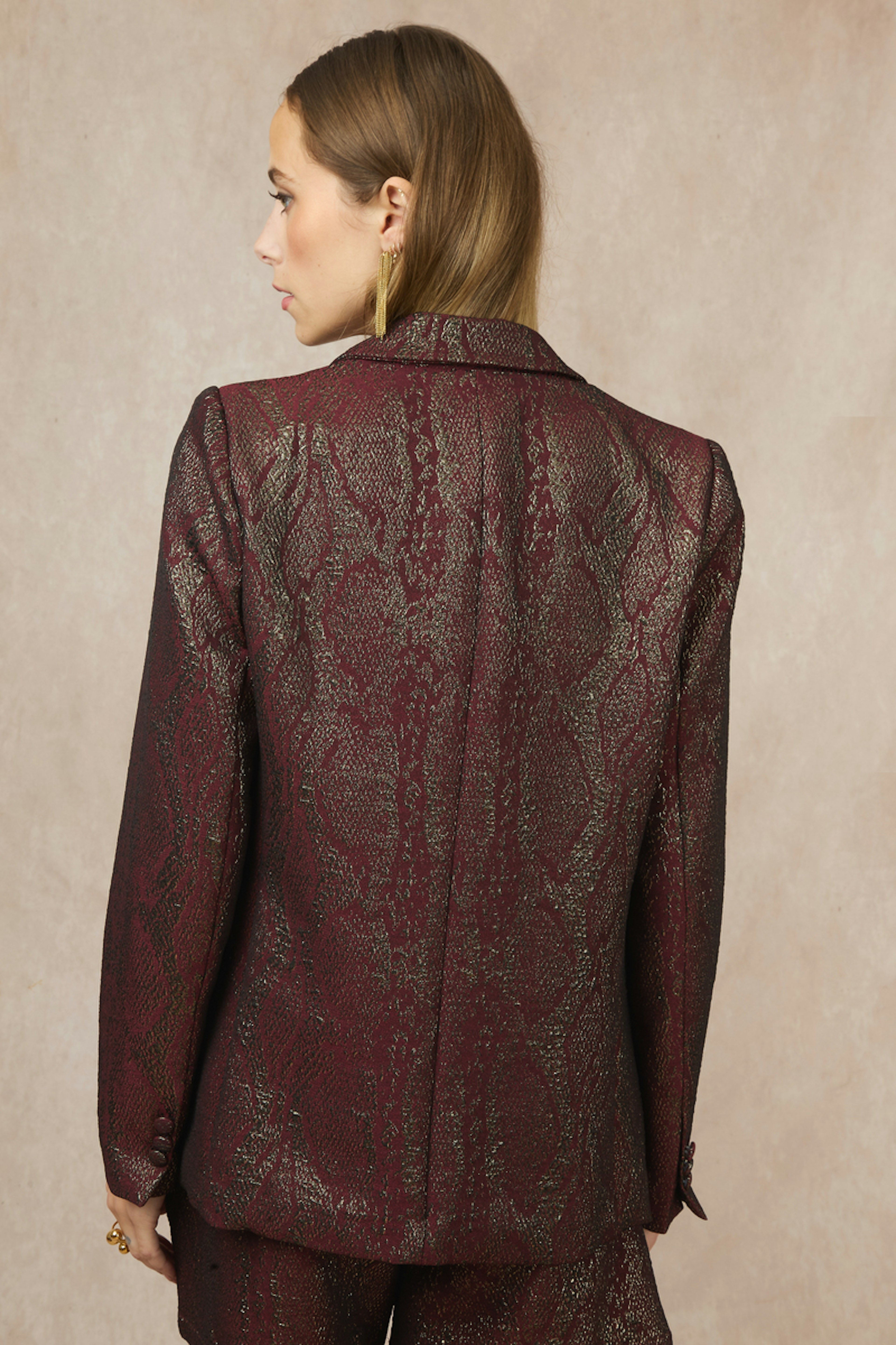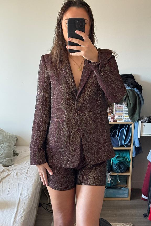 Ajoutez une touche de glamour à votre tenue avec ce blazer chic, parfait avec un pantalon noir ou une jupe crayon. Idéal pour les soirées d'hiver. • Blazer imprimé • Coupe ajustée • Manches longues • Fermeture à deux boutons • Poches avant plaquées