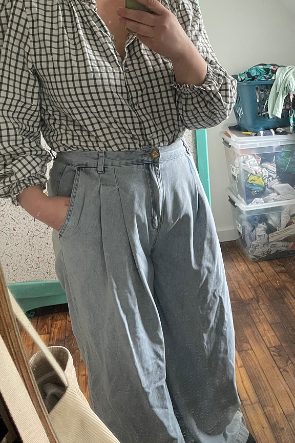 “J'ai aimé la matière de la blouse mais je pensais en la commandant que les lignes étaient noires (et non vertes foncés), j'ai eu plus de mal à l'assortir avec ma garde de robe”