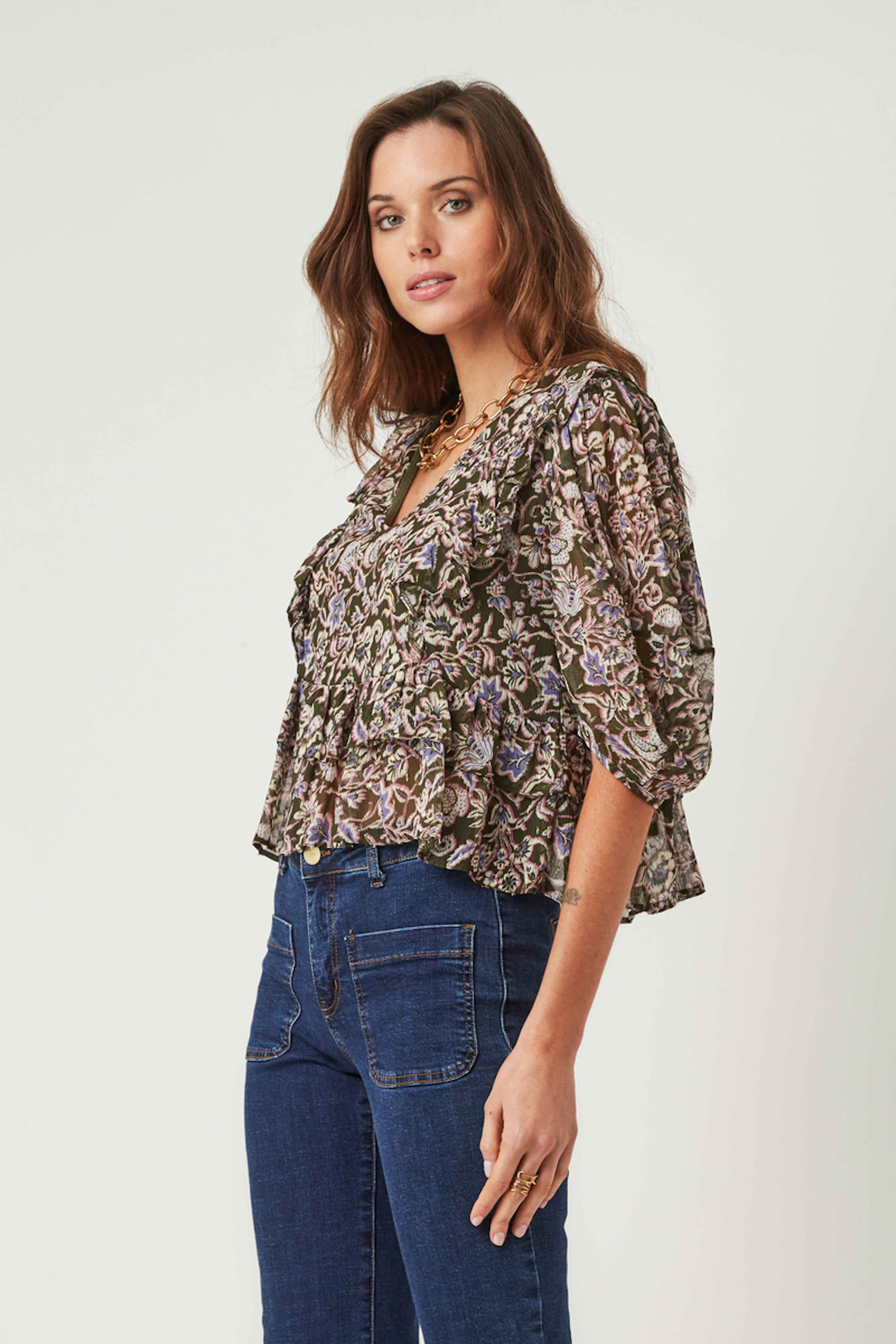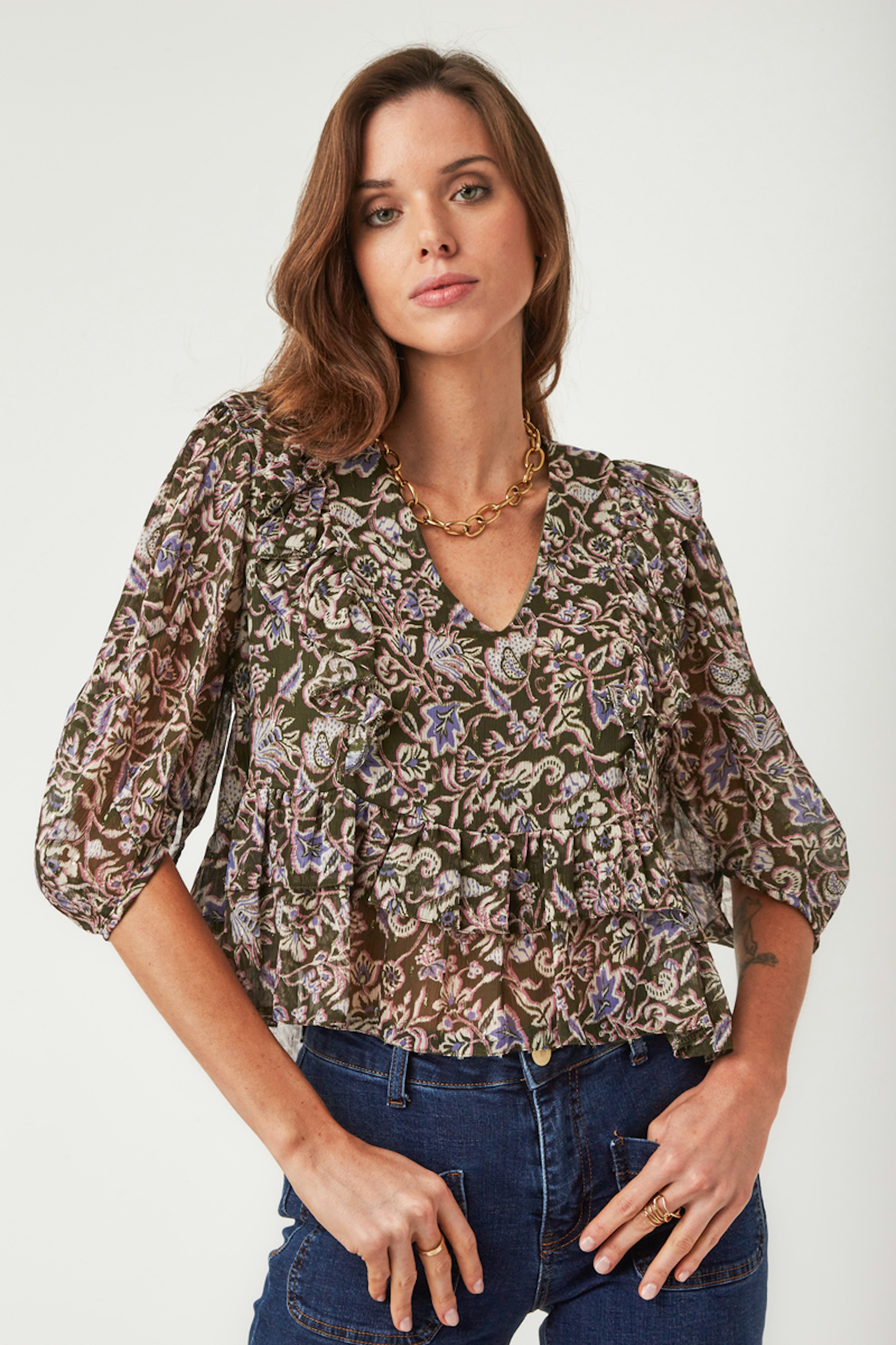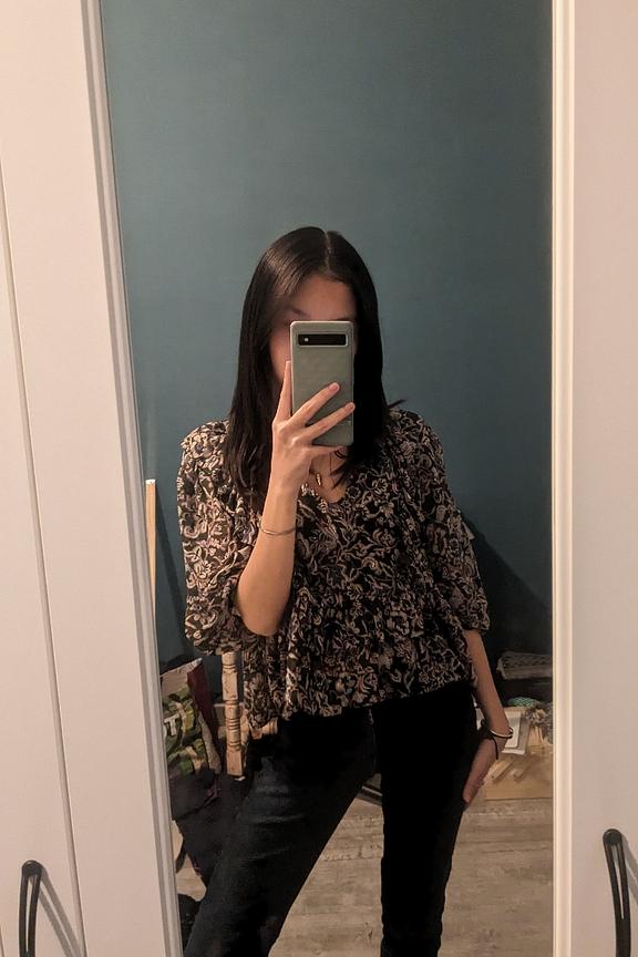 โBlouse stylรฉe mais un peu trop large sur les cรดtรฉs pour un xs. Recommandรฉe pour une fan d'une blouse oversize.โ