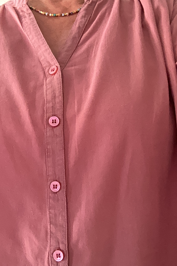 รveillez votre garde-robe estivale avec cette blouse rouge de La Petite Etoile, parfaite pour une balade sous le soleil de juillet ou un dรฎner en terrasse. โข Blouse en coton doux โข Encolure dรฉlicate en V โข Boutons ton sur ton