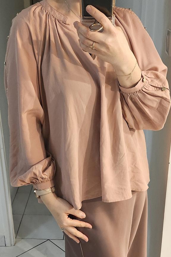 Portez cette blouse avec un pantalon en cuir ou une jupe crayon pour un look chic d'hiver. Parfait pour une transition élégante du bureau à une sortie en ville. • Blouse fluide • Manches longues boutonnées • Coupe ample • Col rond • Tissu doux au toucher