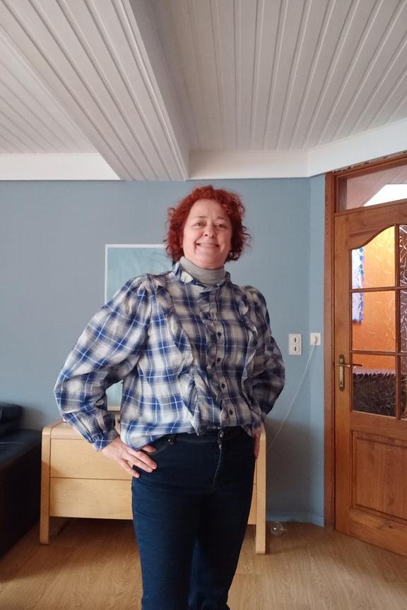 Associez cette blouse à un jean brut et des bottines pour un look chic et décontracté en hiver. • Blouse à volants • Manches longues bouffantes • Col rond • Fermeture boutonnée devant • Motif à carreaux