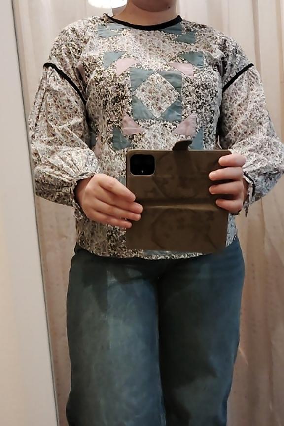 Associez cette blouse à un jean taille haute et des bottines pour un look bohème chic, parfait en toute saison. • Blouse en coton biologique • Col rond • Patchwork devant • Patte de boutonnage épaule • Bas de manche boutonné