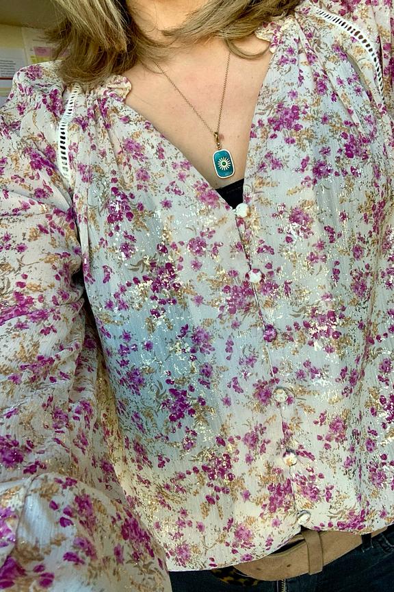 Flirtez avec l'รฉtรฉ en cette blouse bohรจme ! ร marier avec un jean taille haute pour un look chic dรฉcontractรฉ. โข Blouse imprimรฉe romantique โข Encolure dรฉgagรฉe รฉlรฉgante โข Ornements de paillettes scintillantes