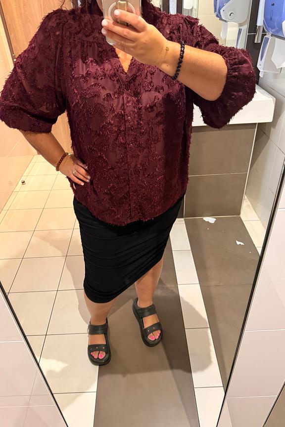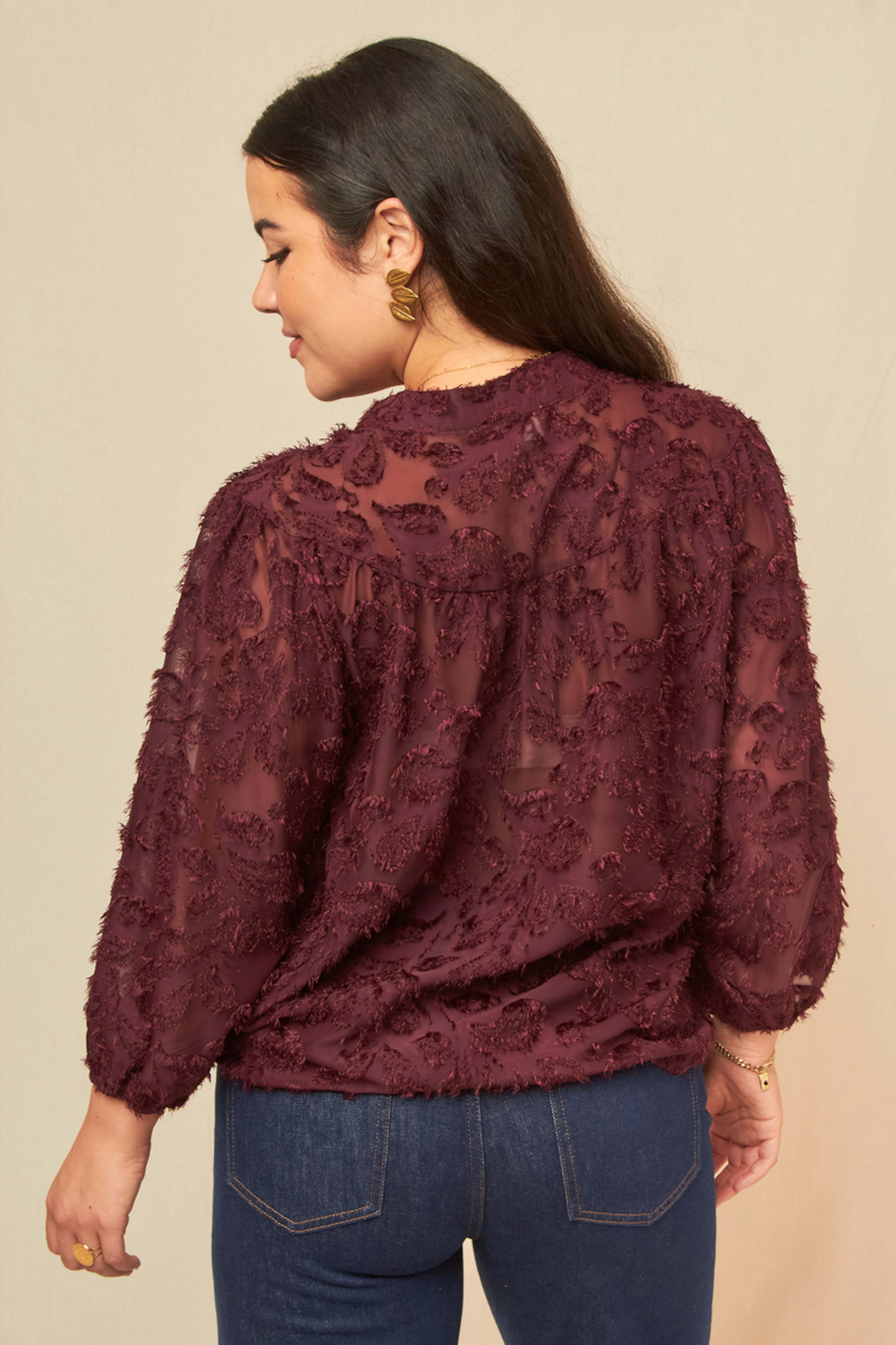 Pour un look sophistiqué, associez cette blouse avec un pantalon noir ajusté et des bottines élégantes. Idéale pour l'hiver. • Blouse à manches longues • Coupe légèrement ample • Encolure en V • Boutons sur le devant • Imprimé texturé floral