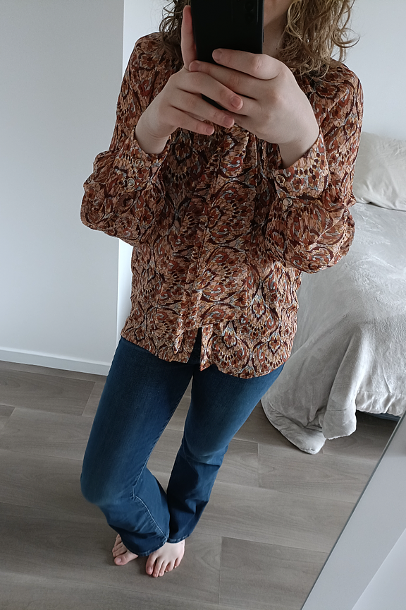 • Chemise lavallière • Col officier avec liens fixes à nouer • Coupe fluide • Manches longues boutonnés • Fermeture boutonnée sur le devant • Bas liquette