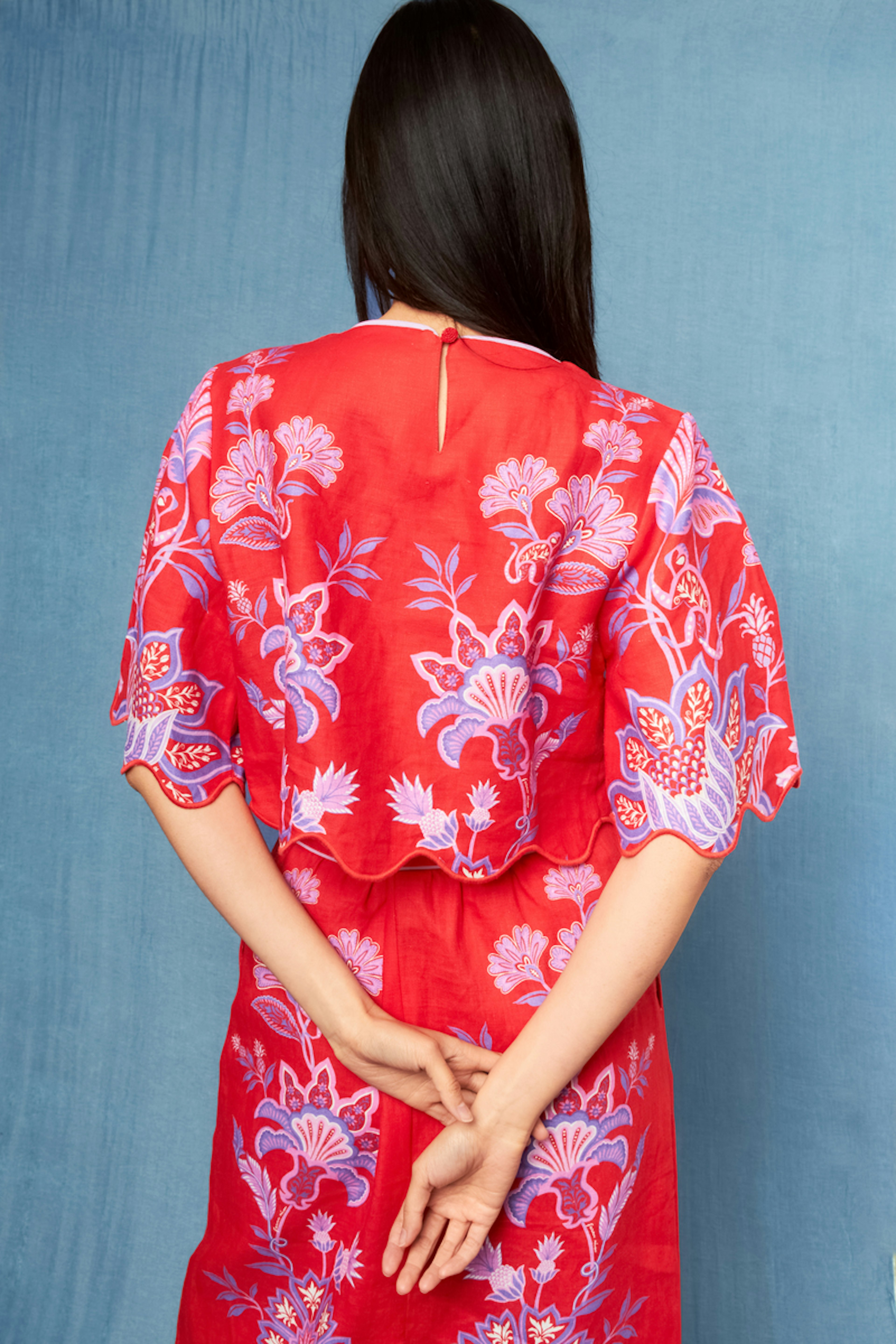 Associez cette blouse FARM RIO avec un jean taille haute et des sandales pour un look estival vibrant. • Blouse en lin • Coupe légèrement évasée • Manches mi-longues bouffantes • Imprimé floral exotique • Détails passepoilés contrastants