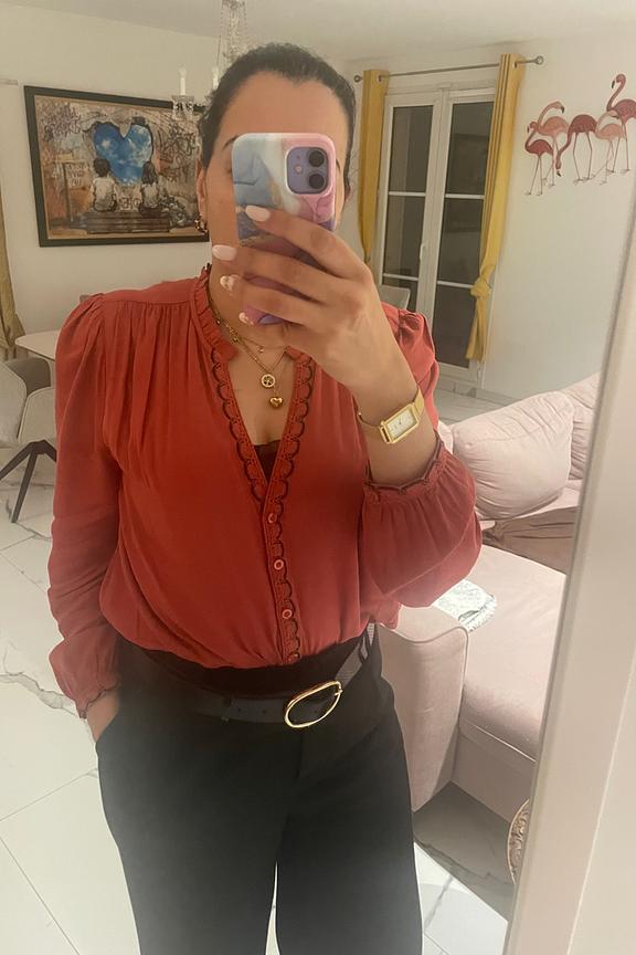 “Jolie blouse mais taille grand je n'ai pas pu la porter.”