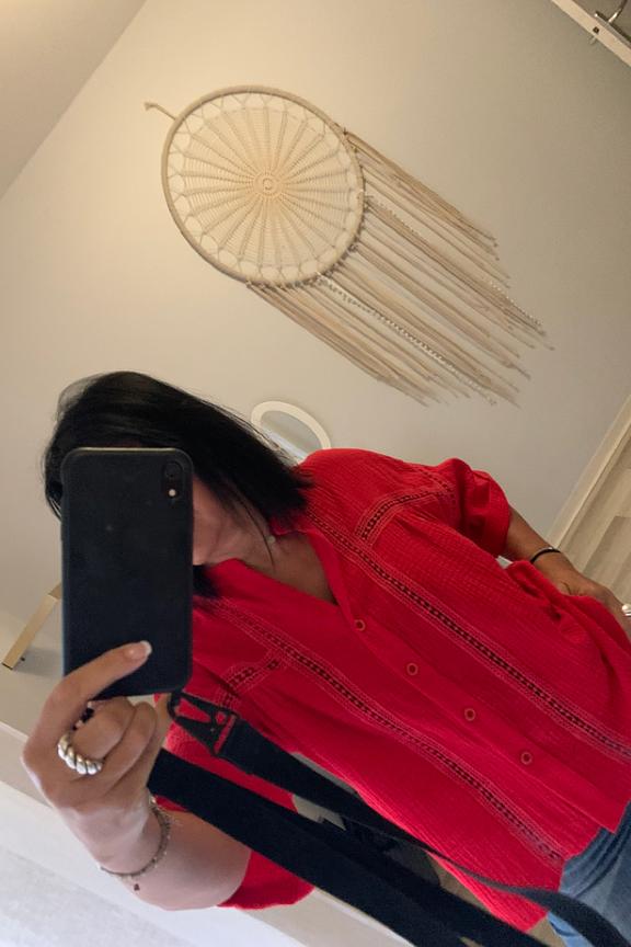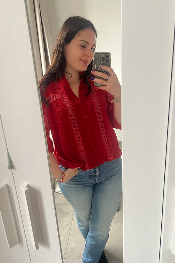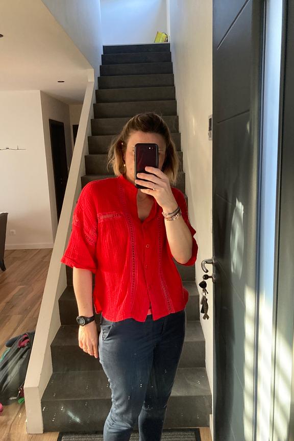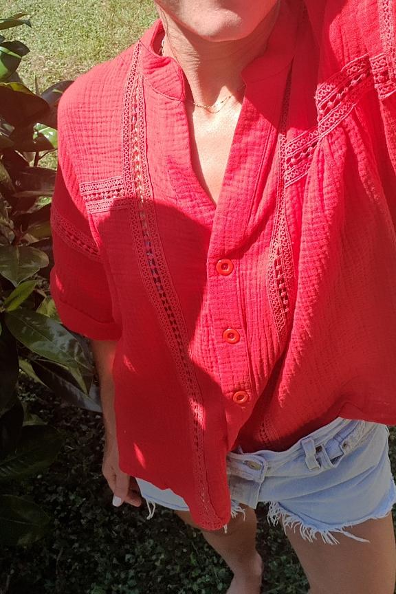 โข Blouse Sorente โข Col chemise โข Dรฉtails effet dentelle โข Manches 3/4 โข Fermeture ร boutons