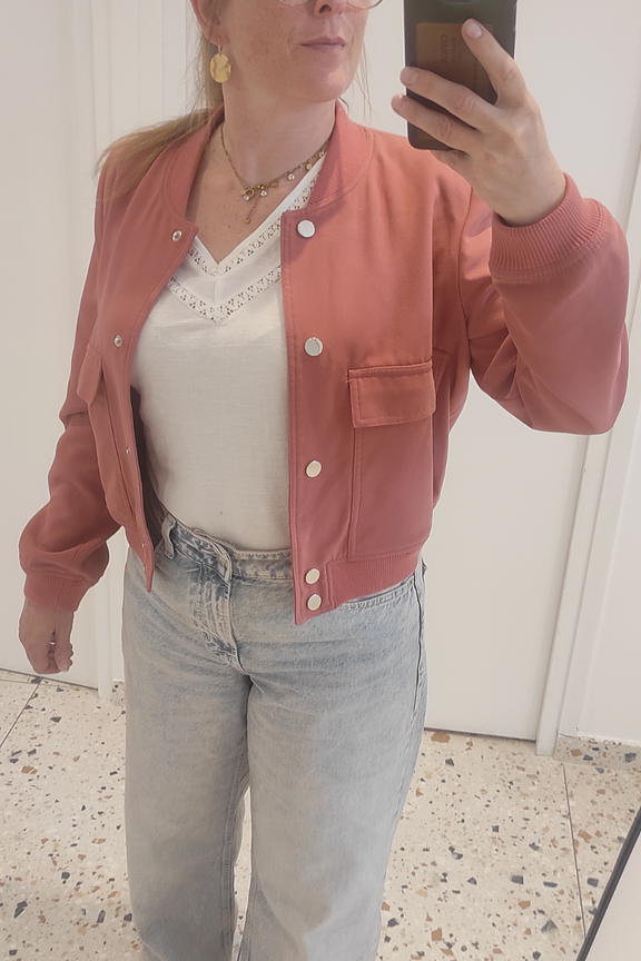 Envolez-vous vers un printemps รฉternel avec ce bomber Majolica rose, parfait pour un look frais et romantique. Associez-le ร un jean blanc pour un contraste divin, idรฉal ร la mi-saison. โข Bomber rose avec boutons argentรฉs โข Coupe ajustรฉe โข Poche ร rabat avant