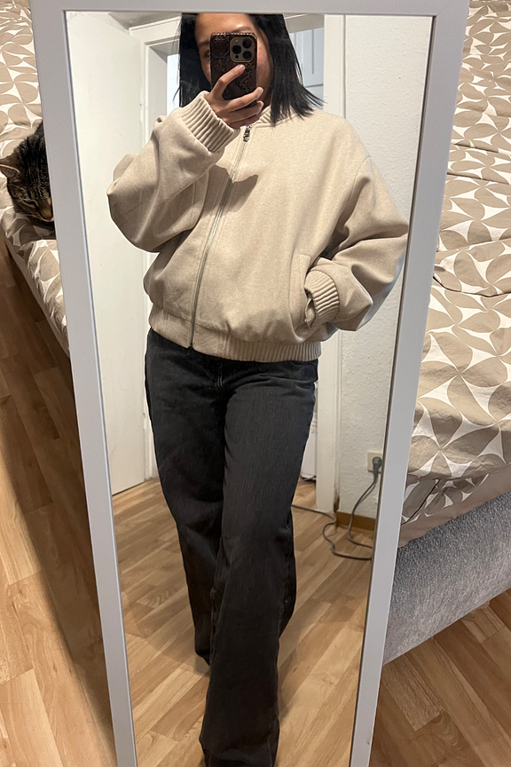 Pour un look chic et hivernal, associez ce bomber avec un pull à col roulé et des bottines en cuir. • Bomber en tissu recyclé • Coupe ample et confortable • Manches longues et arrondies • Fermeture éclair centrale • Bords-côtes aux poignets et taille