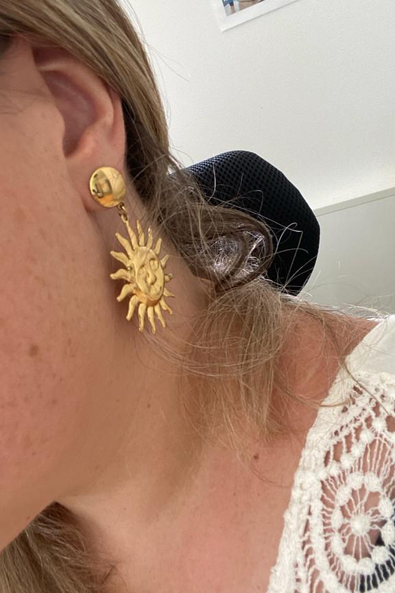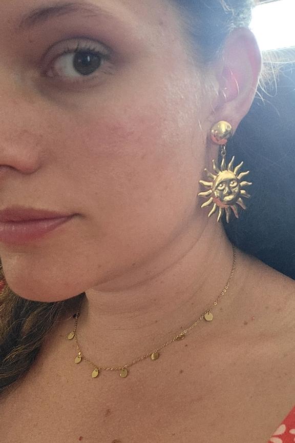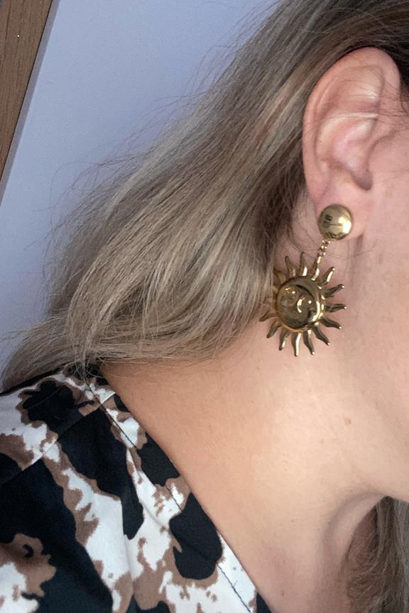 Pour ajouter une touche solaire ร vos tenues, optez pour ces boucles d'oreilles dorรฉes, parfaites en toute saison. โข Boucles d'oreilles en Acier inoxydable โข Couleur dorรฉe โข Motif soleil