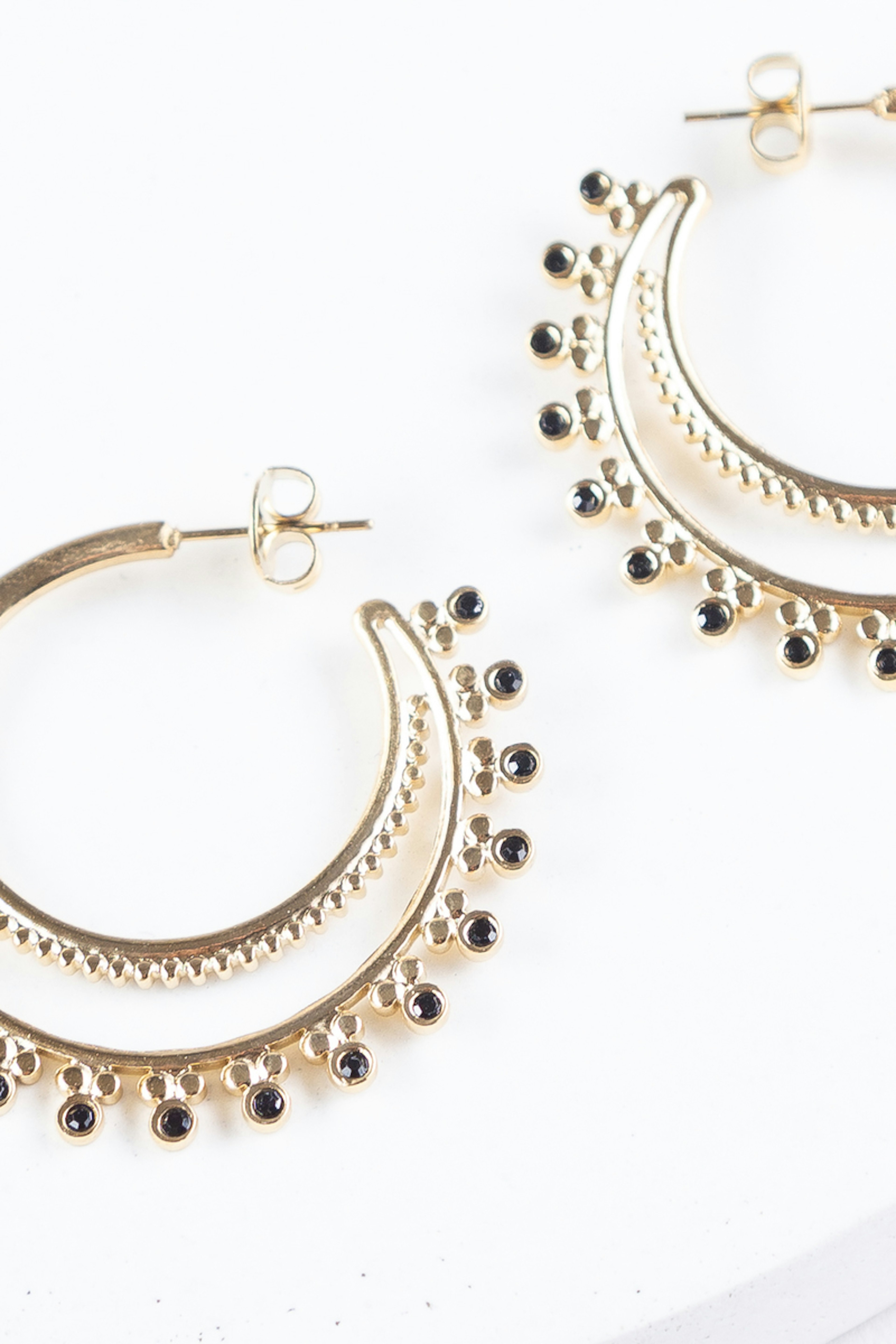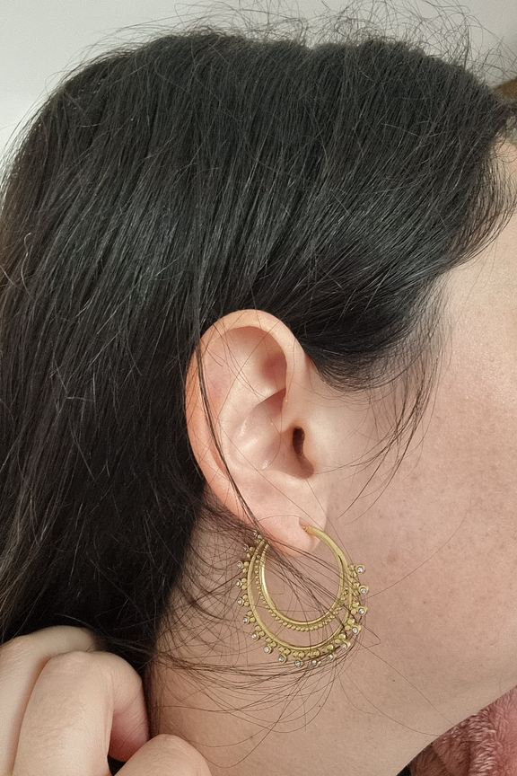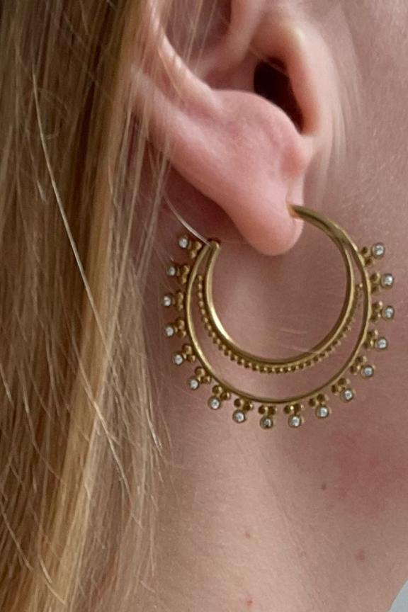 Boucles d'oreilles type crรฉoles multirangs texturรฉes ร puce composรฉes de strass. โข Fermoir papillon โข Dimension : 3,5 x 3,9 cm โข Matiรจre : Acier inoxydable โข Hypoallergรฉnique, ce bijou rรฉsiste ร l'eau et ne noircit pas