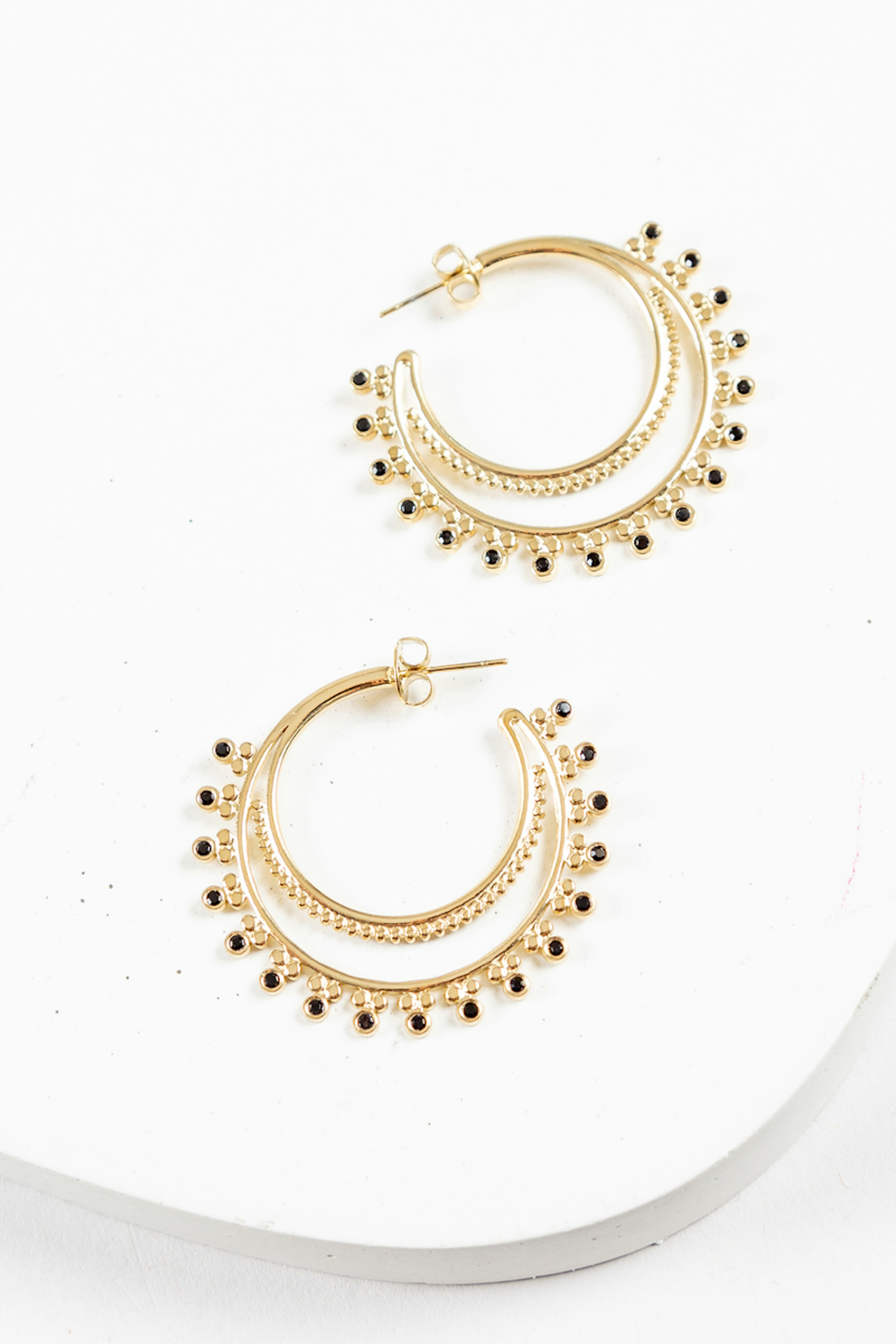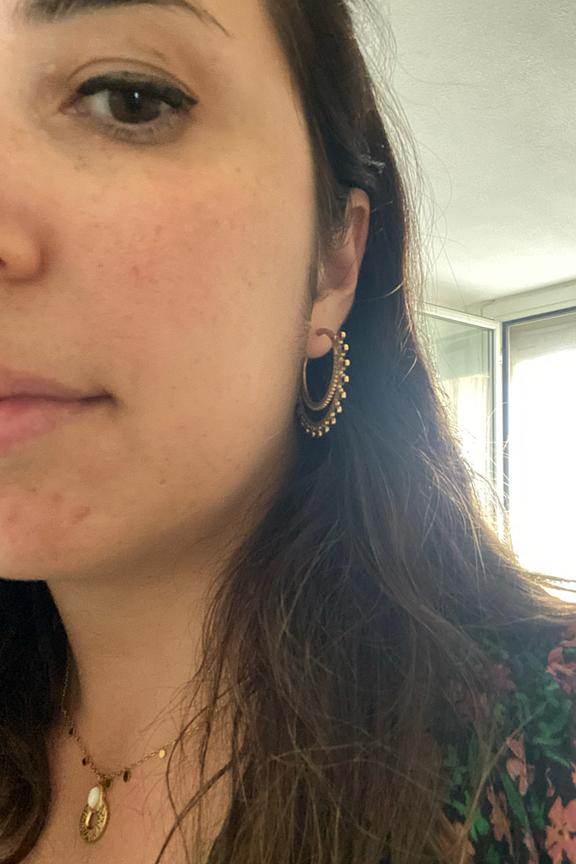 Boucles d'oreilles type crรฉoles multirangs texturรฉes ร puce composรฉes de strass. โข Fermoir papillon โข Dimension : 3,5 x 3,9 cm โข Matiรจre : Acier inoxydable. โข Hypoallergรฉnique, ce bijou rรฉsiste ร l'eau et ne noircit pas