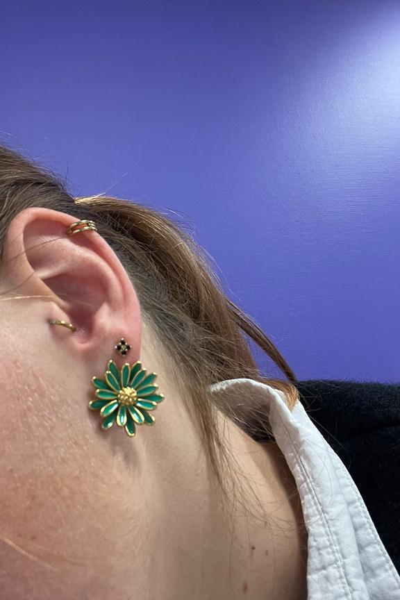 Ces boucles d'oreilles vertes en forme de fleur apporteront une touche de fraรฎcheur et de sophistication ร votre tenue. Parfaites pour toutes les occasions, elles se marieront ร merveille avec une robe lรฉgรจre pour un look estival ou un pull en laine pour une touche d'รฉlรฉgance en hiver. Dรฉtails du produit : โข Boucles d'oreilles en acier inoxydable โข Forme florale รฉlรฉgante โข Fermeture ร tige pour un port sรฉcurisรฉ โข Couleur vibrante et รฉclatante โข Design dรฉlicat et raffinรฉ
