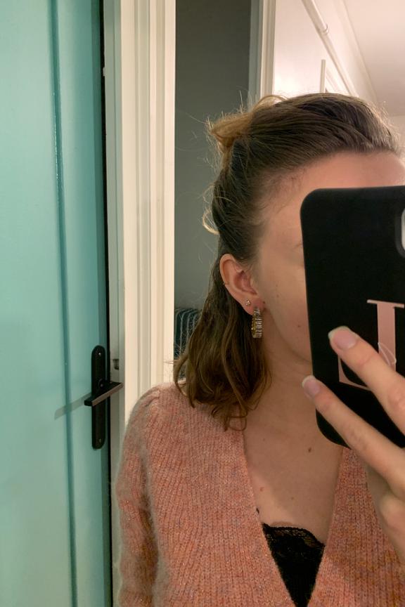 โข Boucles d'oreilles en forme de coeur โข Dorรฉes avec strass argentรฉs โข Acier inoxydable