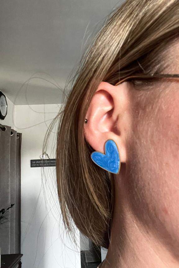 Ajoutez une touche de couleur ร  votre tenue avec ces boucles d'oreilles charmantes, parfaites pour toute saison. โ€ข Forme cล“ur โ€ข Contour dorรฉ โ€ข Effet marbrรฉ โ€ข Fermoir classique