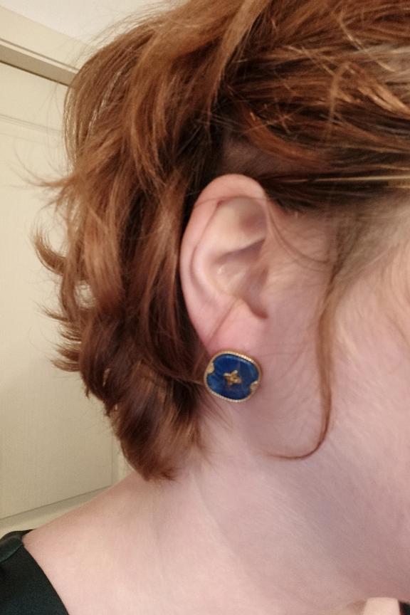 โTrรจs joli en rappel de couleur bleu, par contre dommage la couleur est plus foncรฉe en vrai donc elle ressort moins et elles sont un peu lourdes il faut bien serrer le fermoir pour ne pas les perdre, problรจme que j'ai dรฉjร eu sur d'autres paires.โ