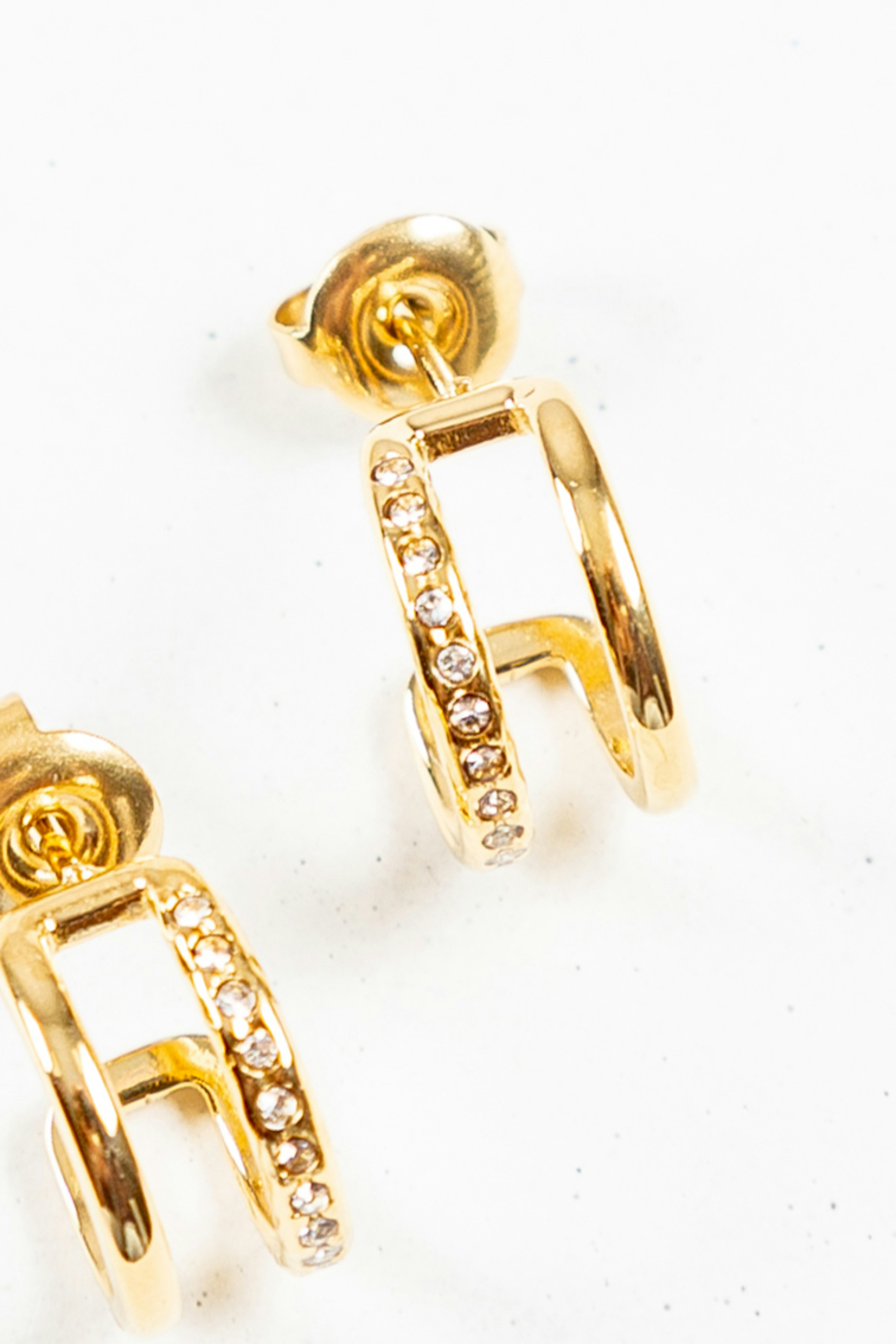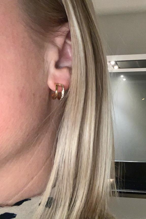 Boucles d'oreilles type crรฉoles ร puce 2 rangs composรฉes de strass. โข Fermoir papillon โข Diamรจtre: 1,20 cm โข Matiรจre : Acier inoxydable โข Hypoallergรฉnique, ce bijou rรฉsiste ร l'eau et ne noircit pas